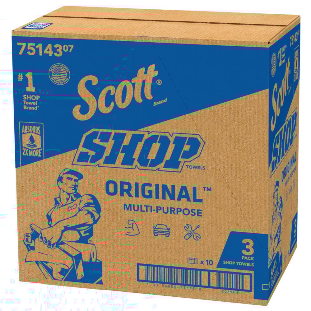 Les serviettes d'atelier Scott® Shop Towels Original™ sont fabriquées par Scott®, la marque de serviettes d'atelier n°1. Ces serviettes d'atelier bleues absorbent 2 fois plus que les serviettes en papier de marque de premier ordre pour vos tâches quotidiennes. Les serviettes d'atelier Scott® Shop Towels Original™ sont douces, absorbantes et peuvent être utilisées pour nettoyer les déversements d'huile, changer l'huile, remplir les liquides et autres travaux d'entretien automobile généraux. Elles peuvent également être utilisées pour absorber les déversements et fuites de liquide importants, le nettoyage et l'entretien de routine et l'élimination des saletés et des liquides du visage et des mains (ne pas utiliser sur une peau fragilisée). Disponibles en format rouleau ou en boîte Pop-Up™ avec une poignée intégrée, ces serviettes perforées en tissu sont portables pour les travaux en déplacement. Que vous possédiez un garage automobile, que vous soyez un bricoleur du week-end ou que vous travailliez à la maison, ne faites confiance à personne d'autre qu'à la serviette d'atelier bleue originale, Scott® Shop Towels Original™, fabriquée par Scott®, la marque de serviettes d'atelier n°1 (Circana, Retail Tracking Service, ventes aux États-Unis, 2021 et 2022.)