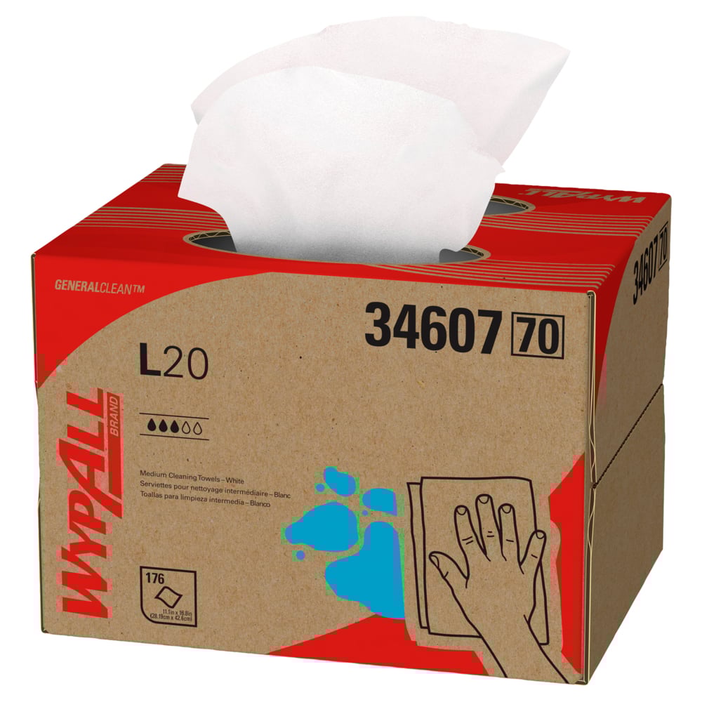 Lingettes - Chiffons de nettoyage WypAll® General Clean L20 Medium, boîte Brag™, blanc (boîte de 176 feuilles), 34607