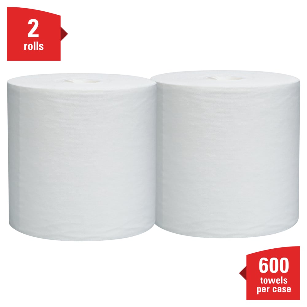 - 300 feuilles/rouleau ; 2 rouleaux de serviettes de nettoyage robustes WypAll® GeneralClean™ L30/caisse ; 600 feuilles/caisse ; blanches ; rouleau à tirage central ; serviettes résistantes et douces