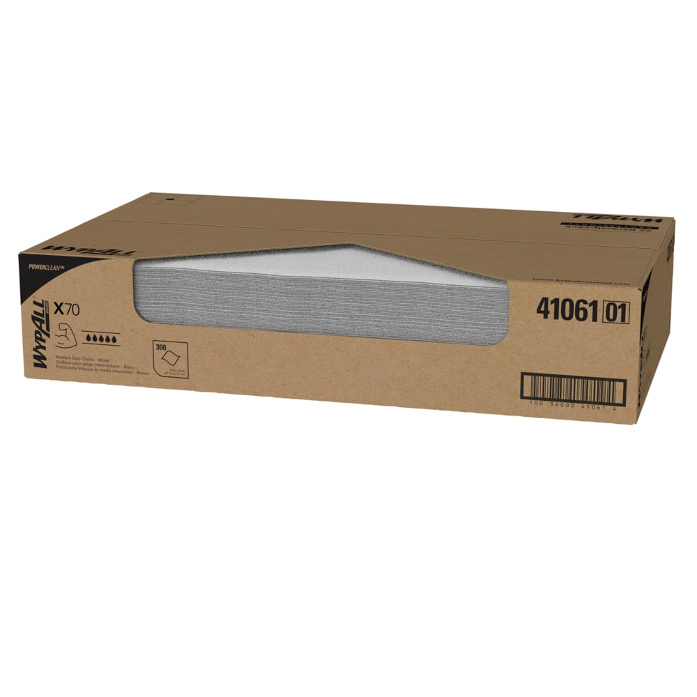 - 300 feuilles/boîte ; 1 boîte de chiffons WypAll® PowerClean™ X70 pour travaux moyens/caisse ; blanc ; boîte de draps plats ; serviettes longue durée