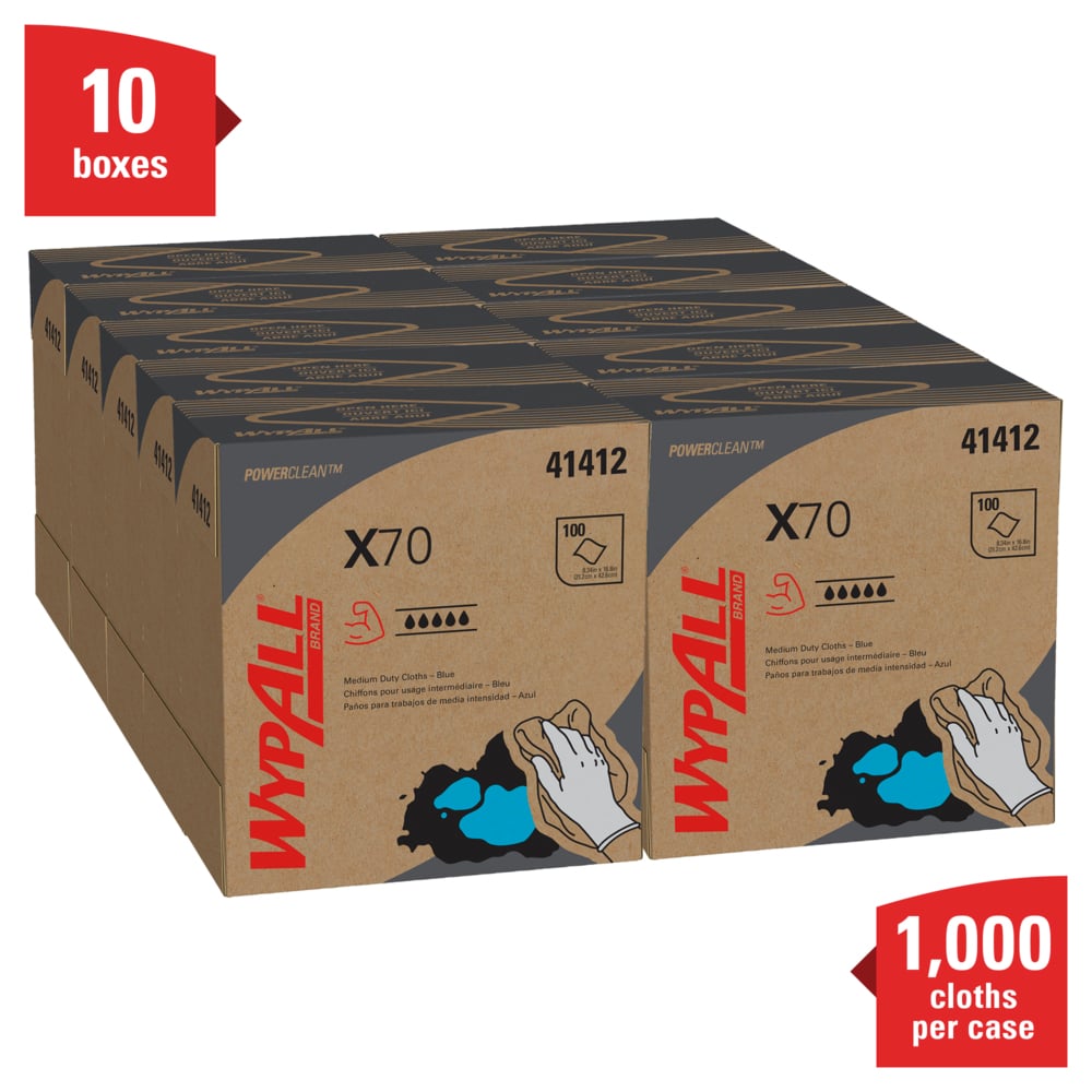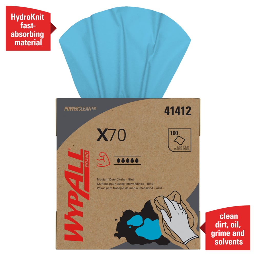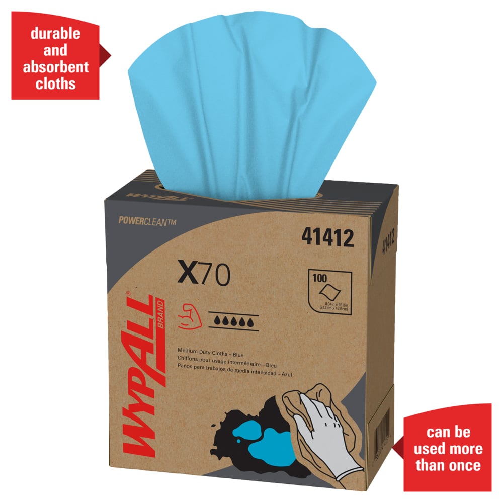 Lingettes - Chiffons WypAll® PowerClean™ X70 pour travaux moyens, boîte Pop-Up™ - Blanc ou bleu (boîte de 10 boîtes), 41455 / 41412