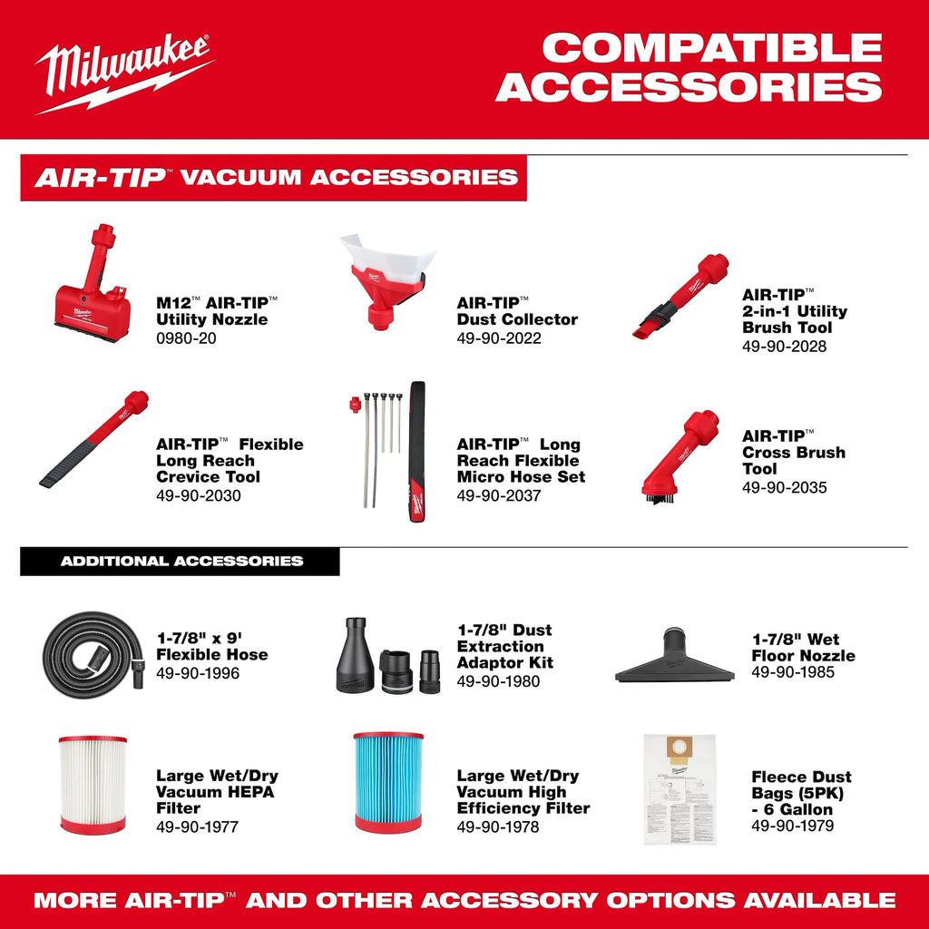 - Peut être utilisé avec des sacs à poussière en polaire Milwaukee pour réduire l'accumulation de débris sur le filtre