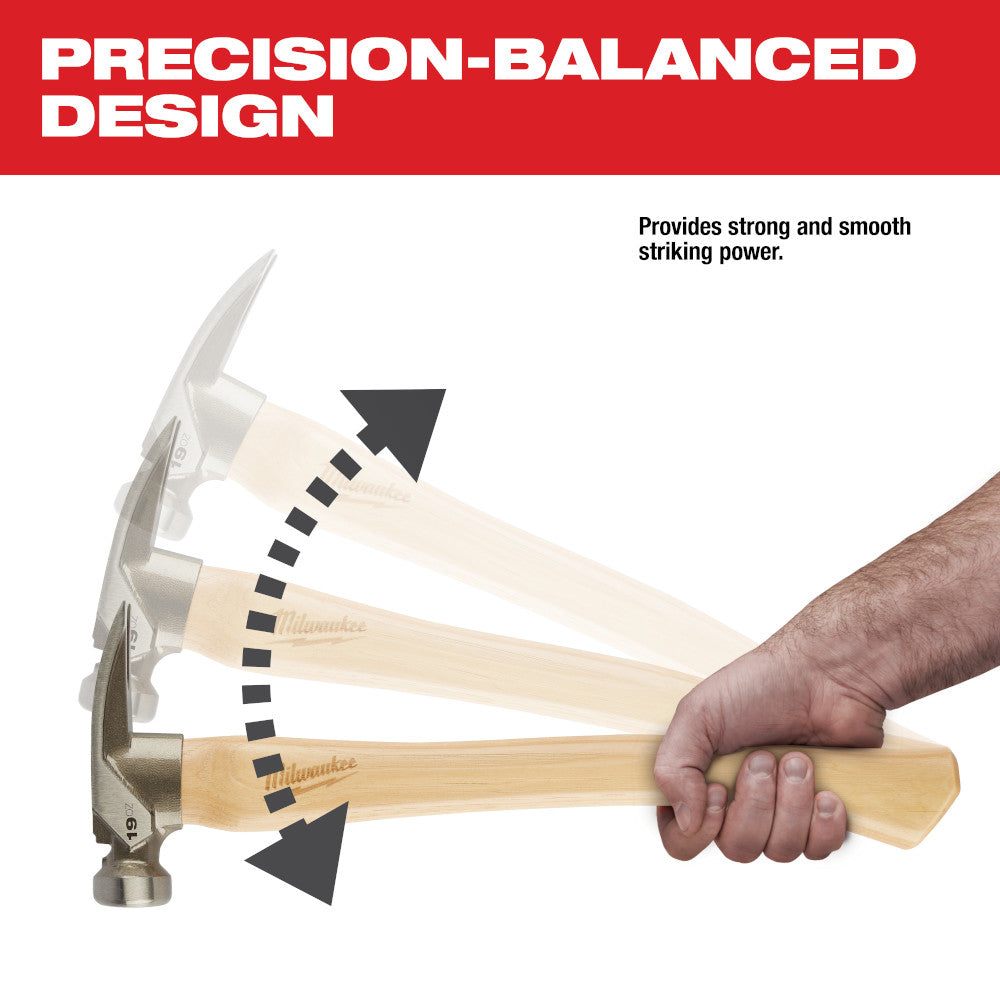 Marteau - Marteau de charpente en bois dhickory à face lisse Milwaukee 19 oz, 48-22-9519