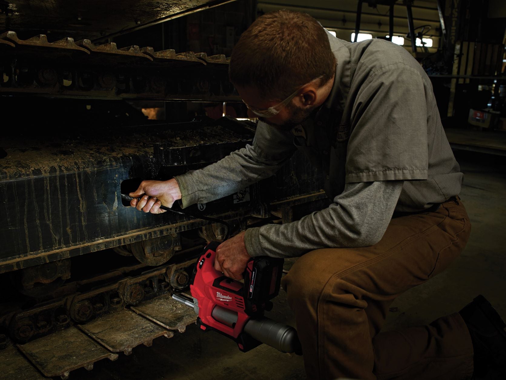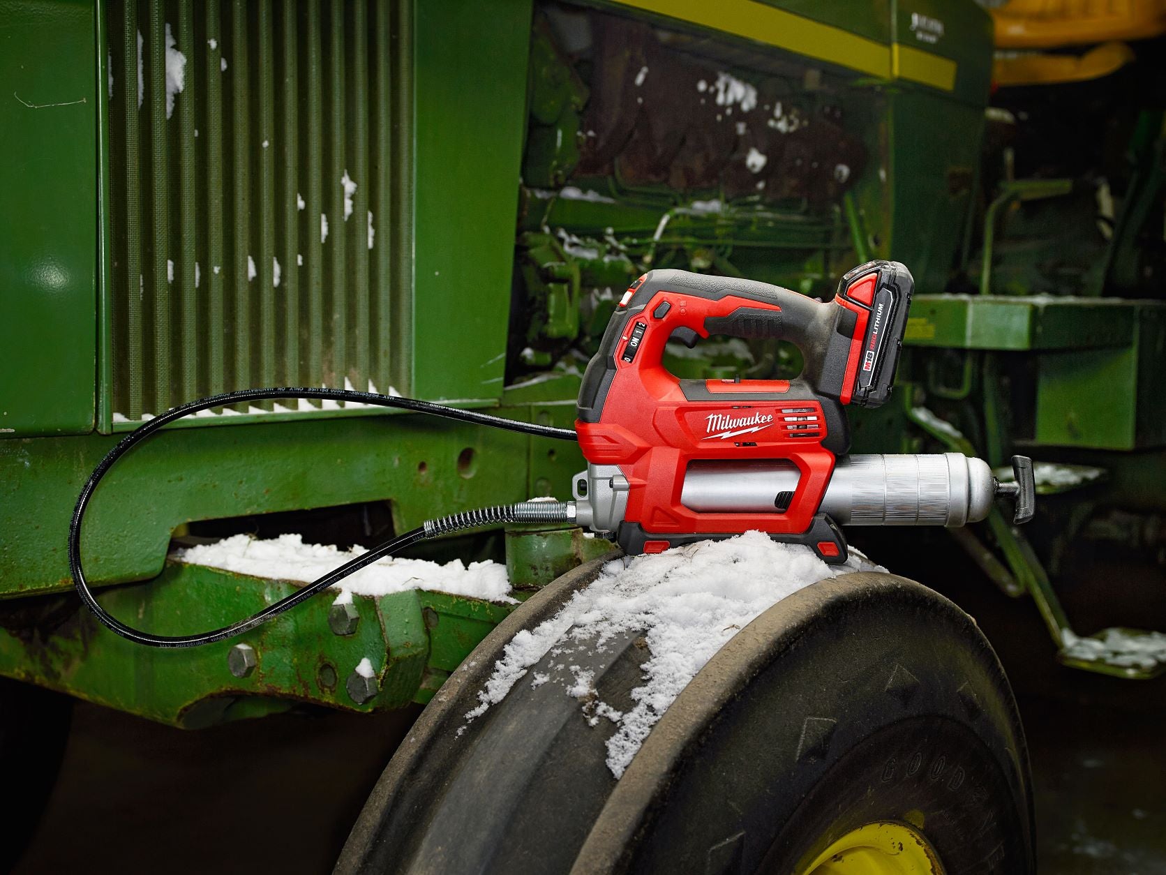 - Comprend : (1) pistolet graisseur 2646 - 20 M18 à 2 vitesses, (1) batterie compacte au lithium rouge 48-11-1815 M18, (1) chargeur multitension M18/M12, (1) mallette de transport (1) bandoulière (1) tuyau flexible de 48 po avec protection à ressort, (1) coupleur de graisse haute pression