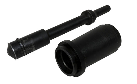 Le jeu de tournevis à douille pneumatique retire et installe les bagues de goupille d'ancrage de 1-3/8" pour camion et remorque et les goupilles d'ancrage coincées. Le cône double face s'enclenche sur le tournevis pour chasser et installer les bagues. Utilisez l'extrémité à bride pour installer et l'extrémité conique pour retirer. Enlève également bagues de ressort à lames de camion.