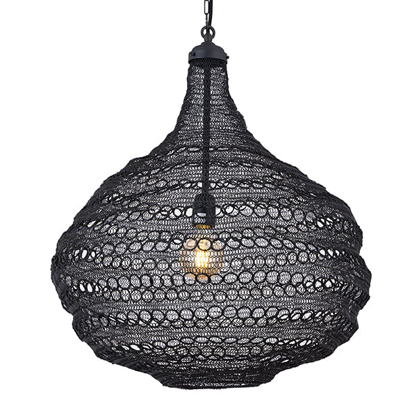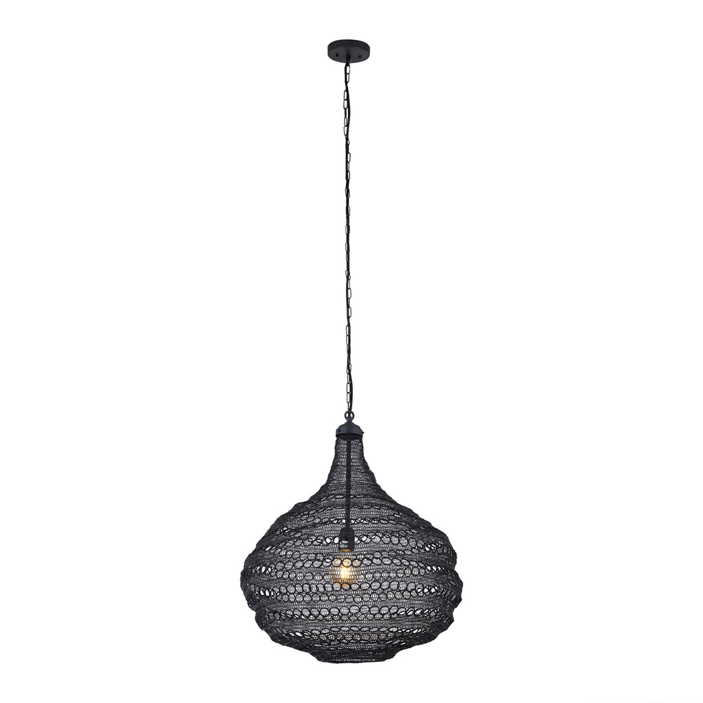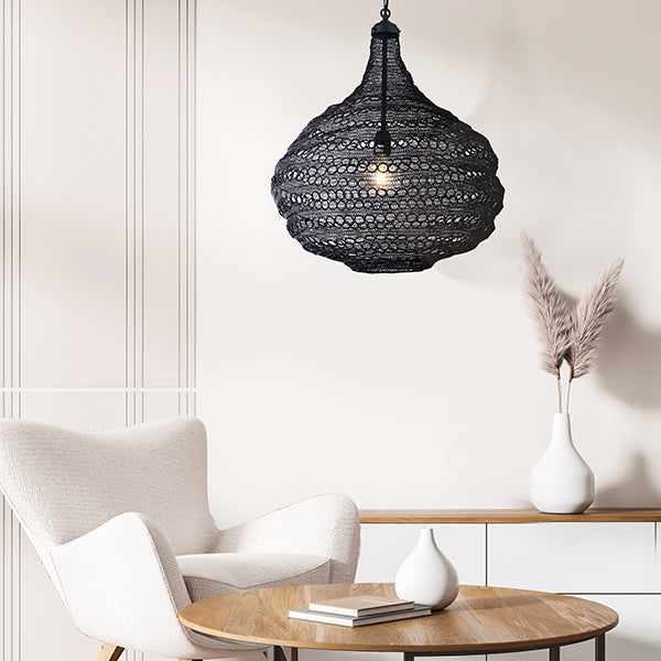 Plafonnier - Canarm ZAIN, Suspension, Noir, Métal, Cordon et Chaîne en Tissu Noir, IPL2085B01BK