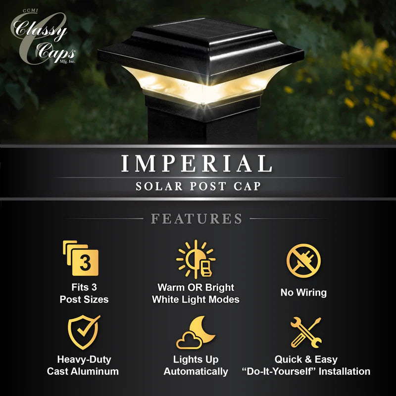 Capuchon de poteau solaire - Classy Caps 2,5 x 2,5 double éclairage en aluminium noir impérial, SLO82B