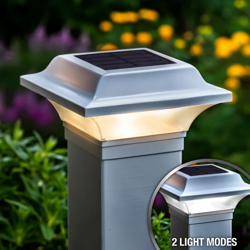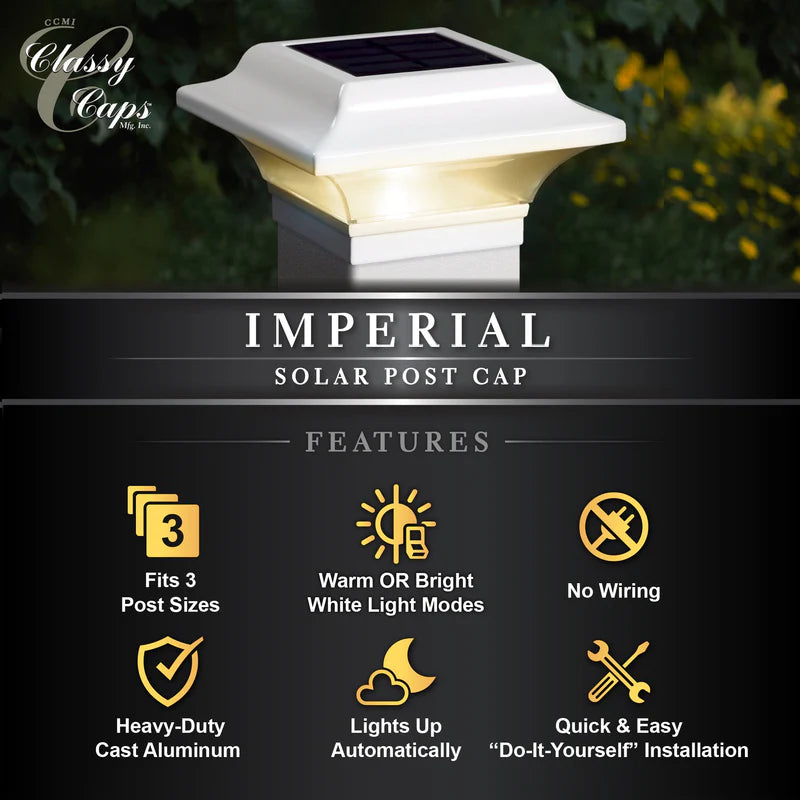 Capuchon de poteau solaire - Capuchons Classy 2,5 x 2,5 double éclairage en aluminium blanc impérial, SLO82W