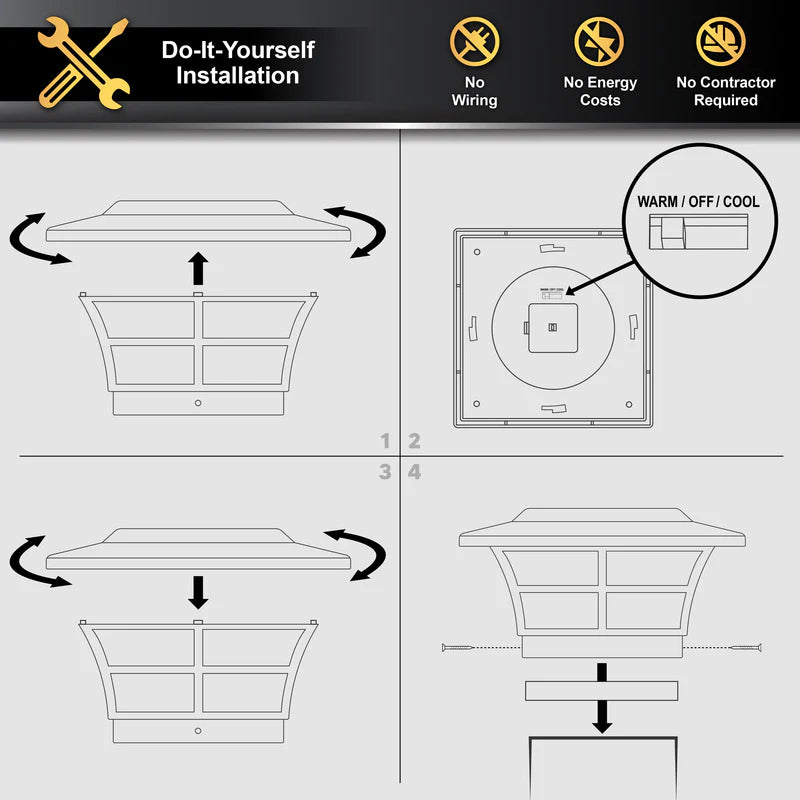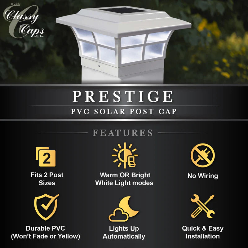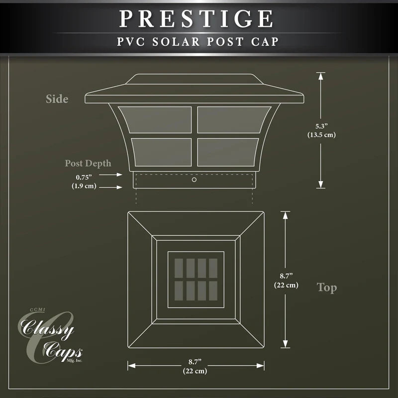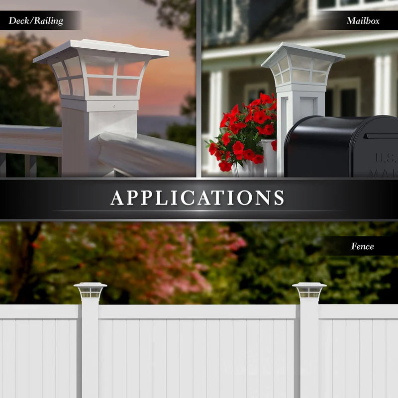 Capuchon de poteau solaire - Classy Caps 5 x 5 Double éclairage PVC blanc Prestige, SLO85