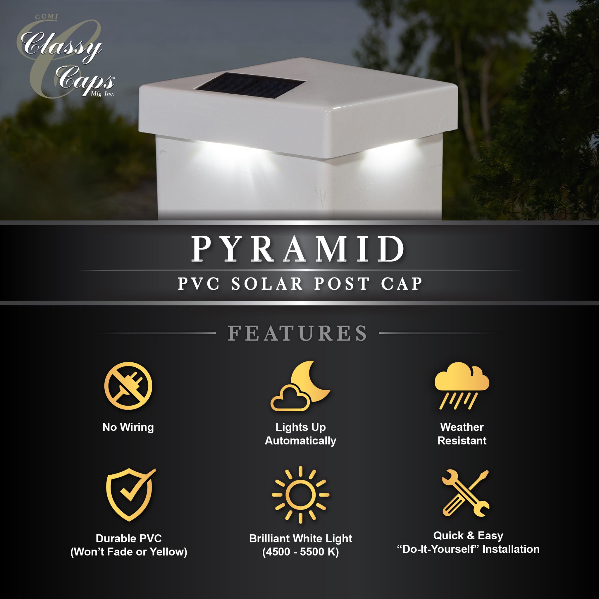 Capuchon de poteau solaire – Capuchons élégants 12,7 x 12,7 cm Pyramide en PVC blanc, SL9902
