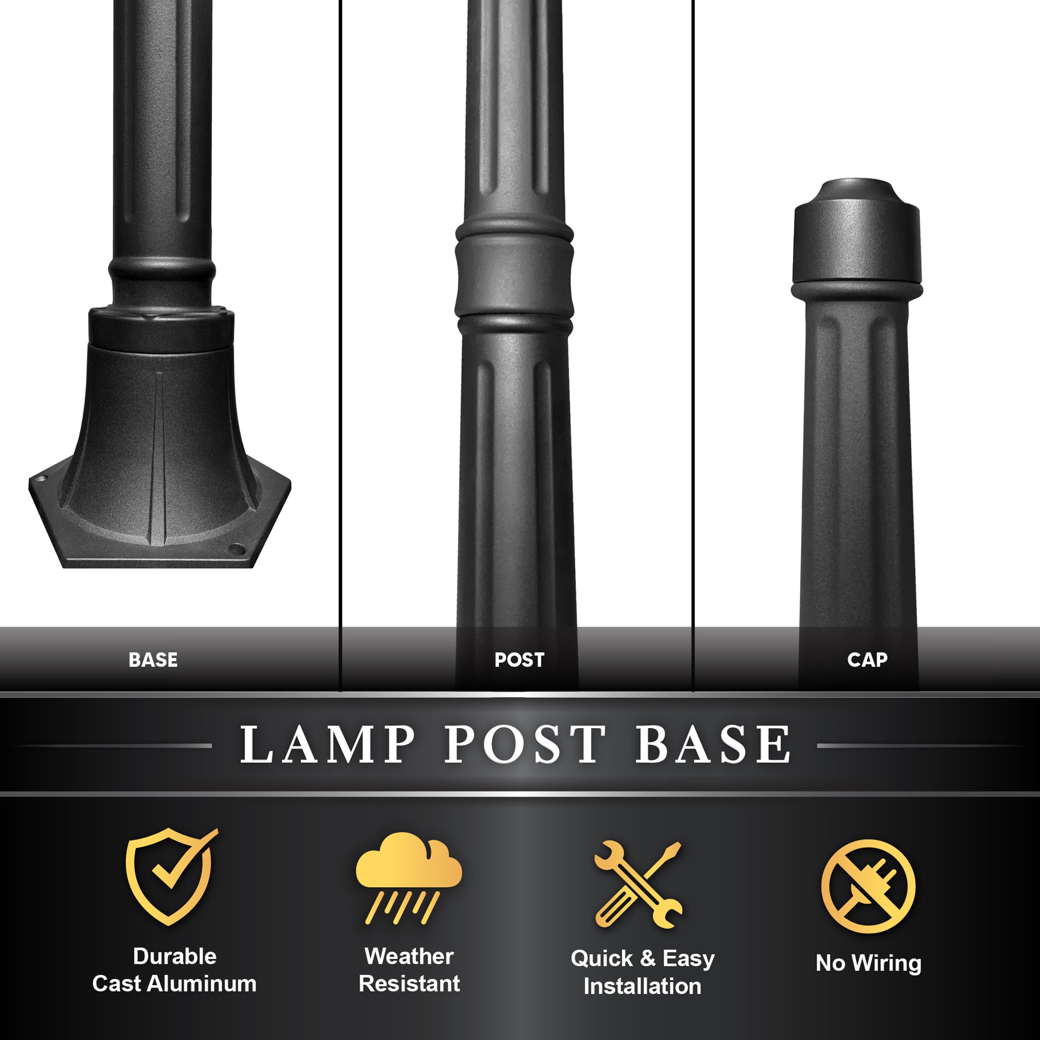 Base de lampe solaire - Base de poteau de lampe en aluminium noir Classy Caps, LPB59