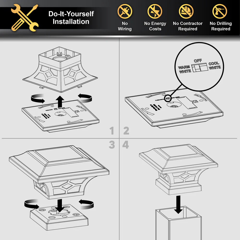 Capuchon de poteau solaire - Classy Caps Kingston blanc ou noir à double éclairage, SLZ332
