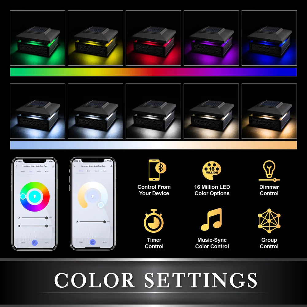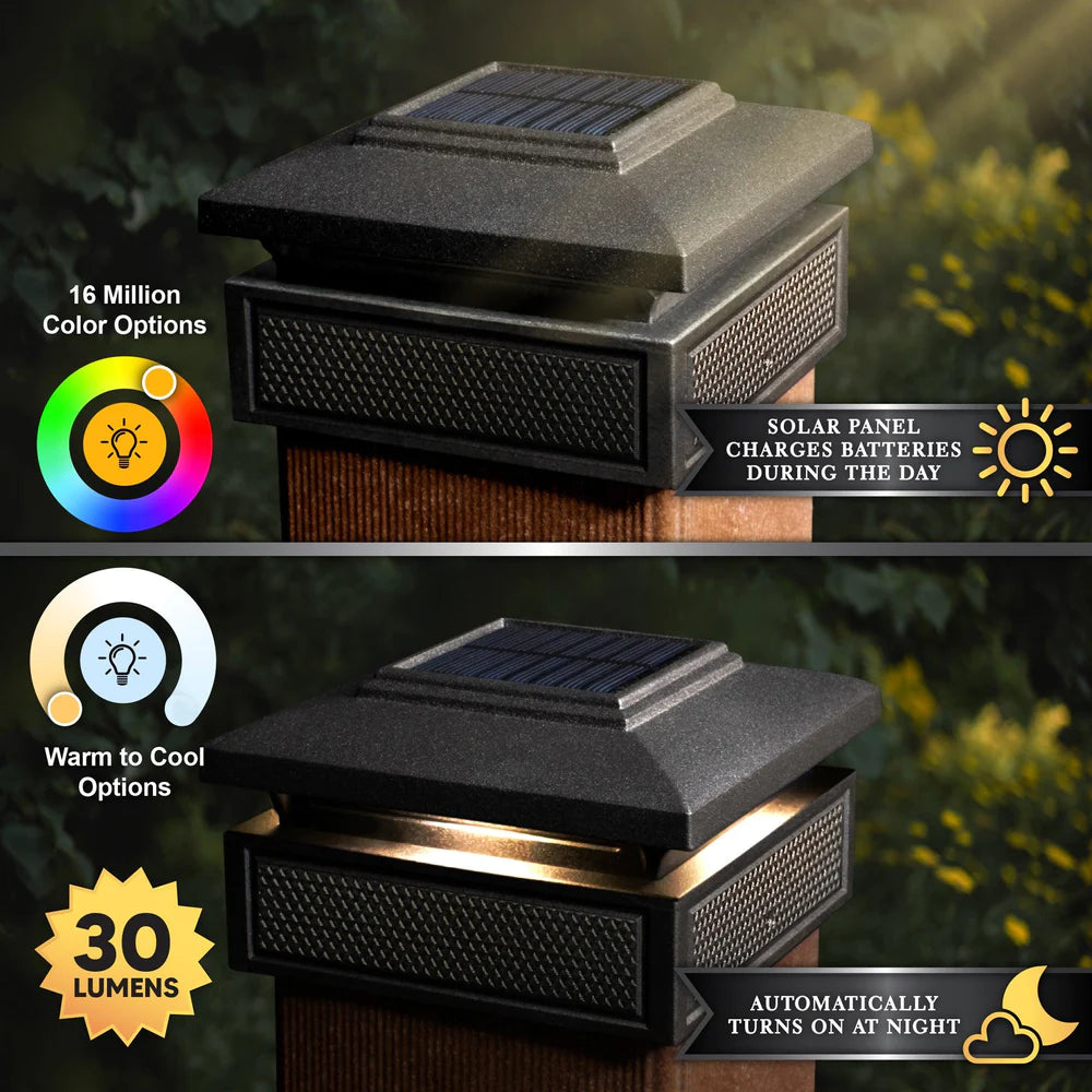 Présentation du nouveau lampadaire solaire intelligent innovant Classy Caps Lumineer ! Notre premier lampadaire solaire intelligent qui accentuera de manière créative votre espace extérieur. Fabriqué à partir de matériaux de la plus haute qualité, le design noir polyvalent 2 en 1 peut être monté sur 3 poteaux de tailles différentes pour éclairer votre boîte aux lettres, vos poteaux de terrasse ou votre clôture. Regroupez plusieurs lumières ensemble pour créer une atmosphère complète pour votre espace de vie extérieur qui impressionnera vraiment. Contrôlez à distance la lumière solaire avec votre téléphone portable via l'application Tuya Smart, où que vous soyez dans le monde. Contrôlez quand et combien de temps vous souhaitez que la lumière soit active, changez l'ambiance et le thème avec le contrôle du variateur ou la sélection de la roue chromatique avec l'option de jusqu'à 16 millions de variations de couleurs ! Faites une déclaration en choisissant la fonction musicale et regardez vos lampes solaires briller au rythme de votre musique préférée ! Ce lampadaire solaire d'extérieur Classy Caps Lumineer, sans équivoque, intelligent, offre commodité, facilité et bien sûr talent artistique à votre environnement extérieur !