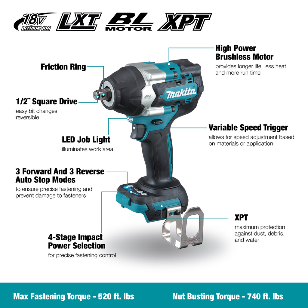 Clé à chocs - Makita Clé à chocs sans fil 1/2 à couple moyen avec moteur sans balais, DTW700XVZ