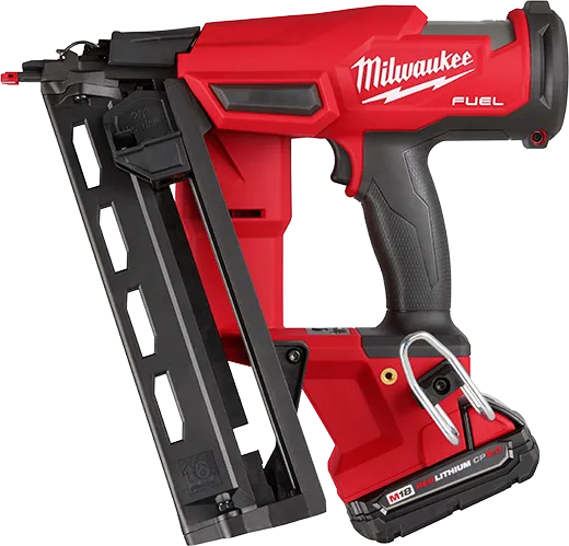 Le kit de cloueuse de finition coudée M18 FUEL™ de calibre 16 offre une productivité maximale sur votre chantier, offrant des performances de clouage inégalées sans les tracas d'un compresseur et d'un tuyau. Tirant parti de notre mécanisme à ressort pneumatique à azote, la cloueuse de finition coudée de calibre 16 vous permet d'enfoncer systématiquement les clous à la profondeur requise dans les bois durs et tendres tout en laissant des trous de clous propres, ce qui permet d'obtenir des résultats répétables et un remplissage facile. Le mécanisme à ressort pneumatique à azote, combiné à notre moteur sans balai POWERSTATE™ et à l'intelligence REDLINK PLUS™, offre une réponse de clouage de type pneumatique avec un temps de montée nul d'un clou à l'autre, vous permettant de rester productif et efficace tout au long de votre travail. Cette cloueuse de finition sans fil présente une conception compacte et ergonomique permettant d'accéder aux espaces restreints où le clouage est nécessaire tout en limitant la fatigue lors de l'utilisation de l'outil. Associée à une batterie M18™ REDLITHIUM™ CP2.0, cette cloueuse alimentée par batterie enfonce jusqu'à 800 clous par charge et est entièrement compatible avec toutes les batteries M18™ REDLITHIUM. Le kit de cloueuse de finition coudée de calibre 16 MILWAUKEE® M18 FUEL™ offre les performances pneumatiques exigées par les menuisiers et les rénovateurs professionnels, avec la liberté et la commodité du sans fil.