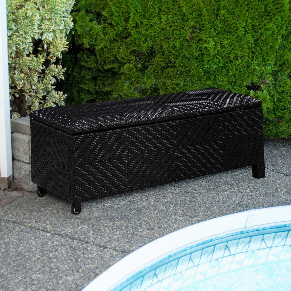 Mobilier dextérieur – Combo coffre-banc en osier rembourré Patioflare, capacité de 60 gallons, PF10789