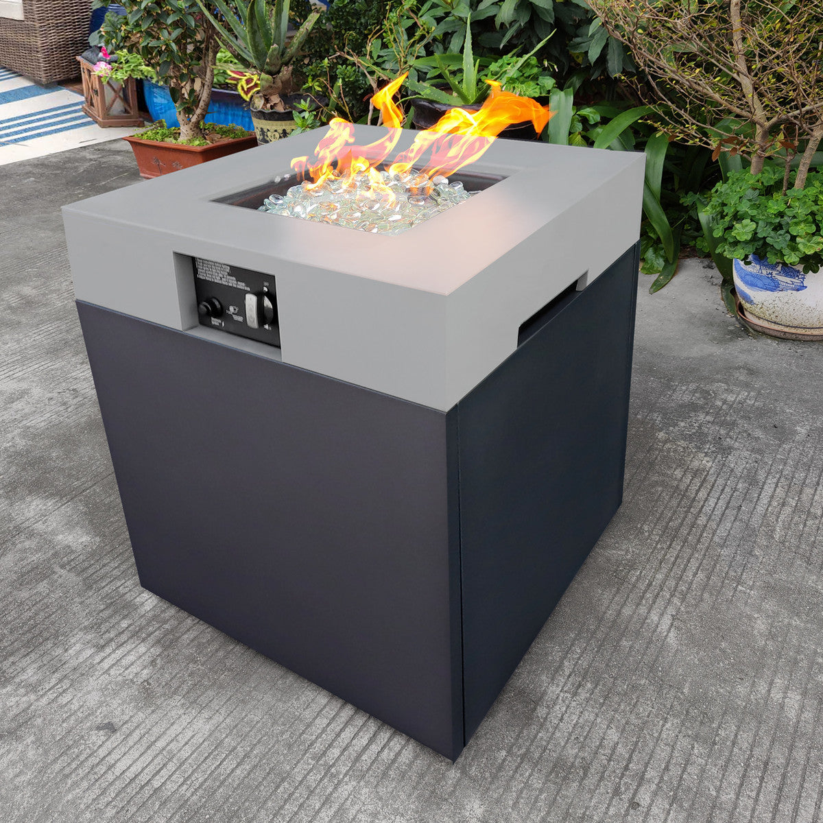 • Enfin, il existe un foyer conçu pour votre petit espace extérieur ! Ce foyer n'a peut-être qu'une empreinte de 22 x 22", mais il contient jusqu'à 37 000 BTU de chaleur. Votre réservoir de propane de 20 LBS se cache soigneusement dans la base afin qu'il ne devienne pas une horreur ou un risque de trébuchement. Il est également livré avec un système anti-renversement. protection pour éteindre l'appareil en cas de chute.