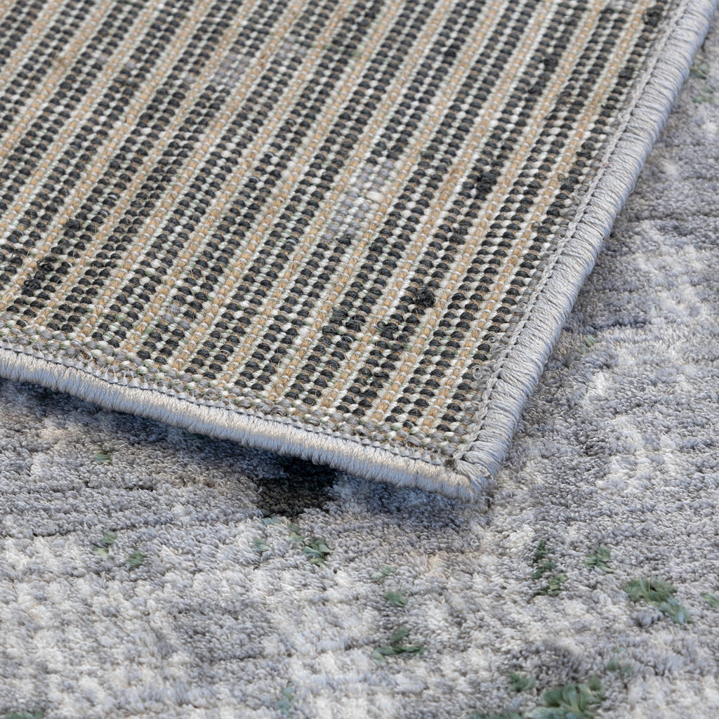 Ce tapis d'intérieur est le choix idéal pour tous ceux qui souhaitent ajouter à la fois style et durabilité à leur maison. Un tapis incroyablement doux aux teintes multicolores vertes, grises et argentées, une hauteur de poils moyenne à basse pour les zones à fort trafic et un support en latex, facile à nettoyer.