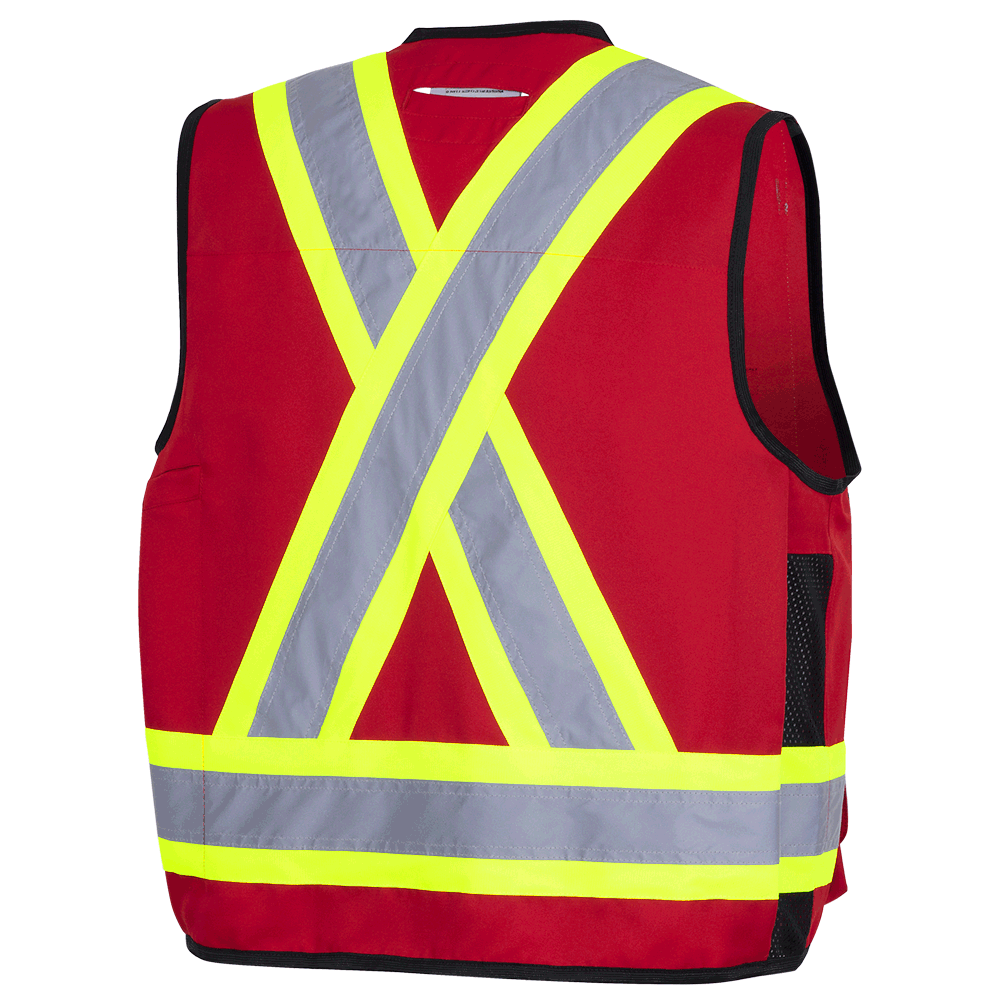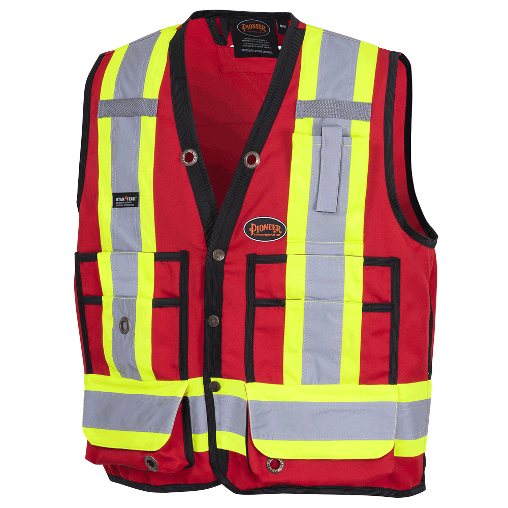 Gilet de sécurité - Gilet de sécurité Pioneer Red Hi-Vis 150D Poly Twill pour géomètre - Fermeture à pression, 6683