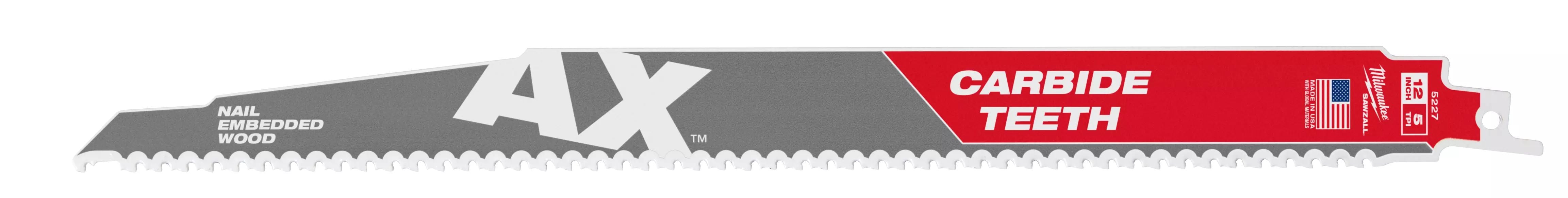 Lames de scie - Milwaukee 12" 5 TPI AX™ avec dents en carbure pour bois avec clous, lame SAWZALL® (1 paquet), 48-00-5227