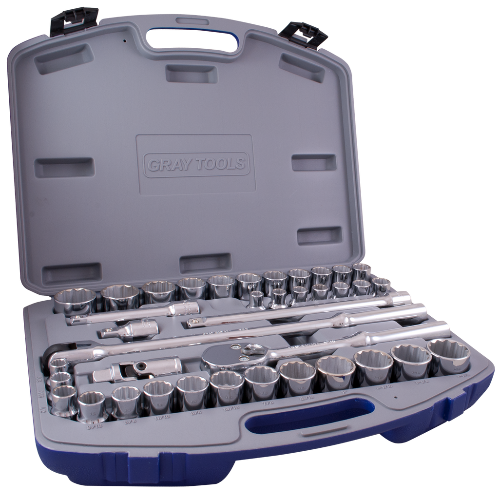 Jeu de douilles - Gray Tools Ensemble de 38 pièces à 12 pans métriques et impériaux à entraînement 1/2, 35038DH🍁