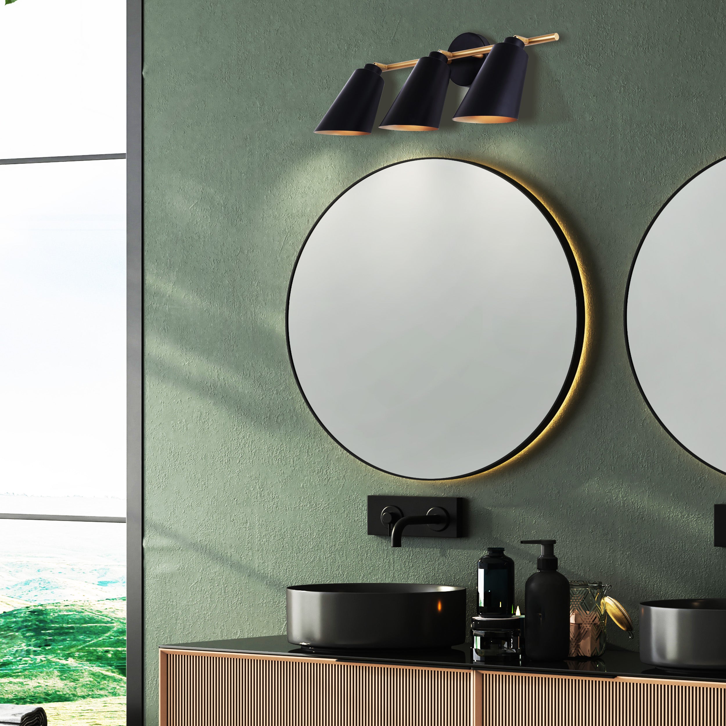 Applique de vanité - Canarm RAME Applique de vanité à 3 lumières noir mat et or, IVL1178A03BKG