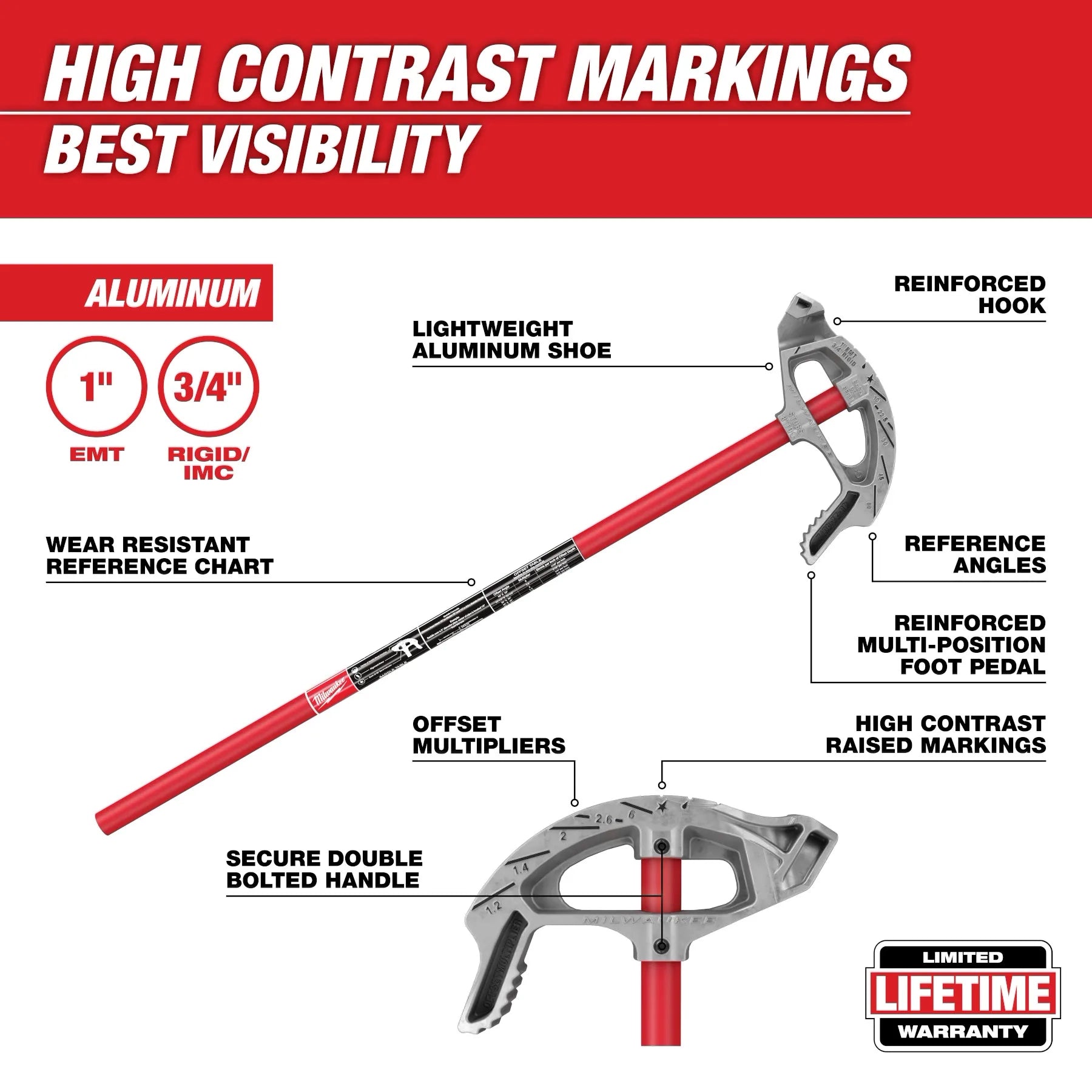 Pipe Bender - Milwaukee Aluminum 1 EMT, 3/4 Rigid/IMC Conduit Bender, 48-22-4072