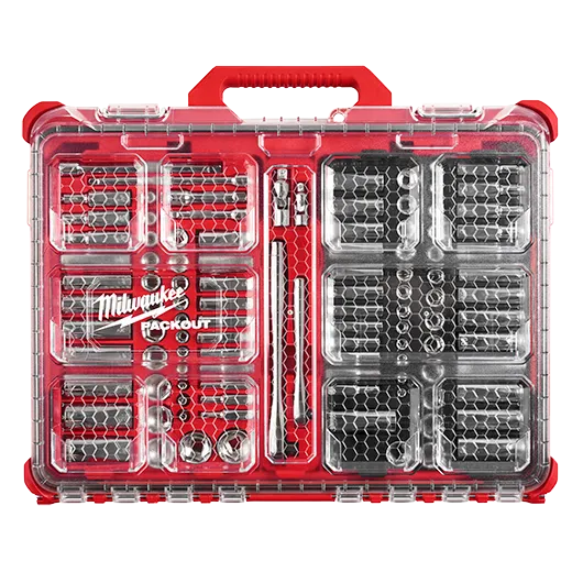Socket Set - Milwaukee 106pc 1/4-in and 3/8-in Metric & SAE Ratchet and Socket Set with PACKOUT™ Low-Profile Organizer, 48-22-9486