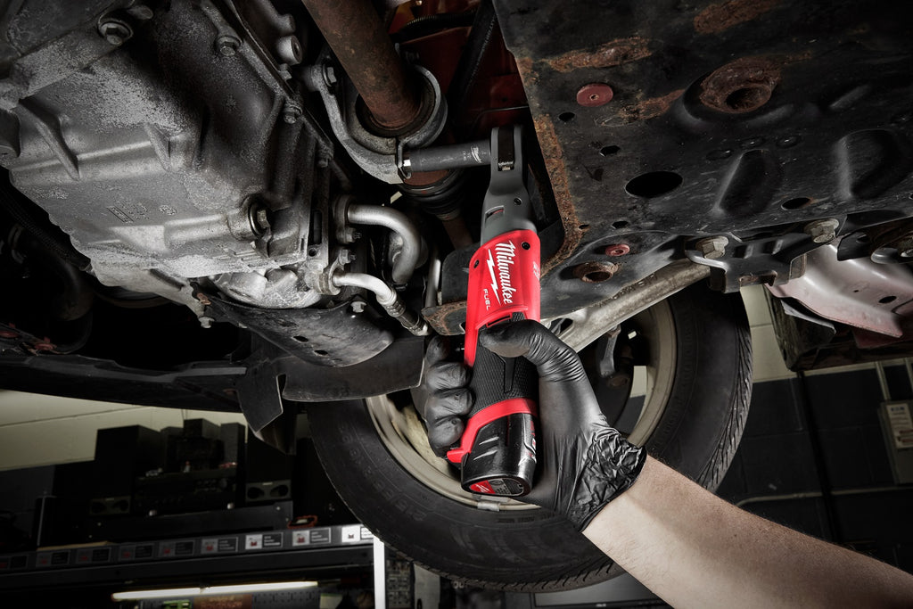 The MILWAUKEE® M12™ FUEL™ 3/8" Ratchet is the first cordless tool that provides both the torque and compact size to replace pneumatic ratchets in the industry. This cordless ratchet kit includes 2 REDLITHIUM™ batteries, an M12™ battery charger and carrying case. This Milwaukee ratchet delivers up to 55ft-lbs of max torque and 200rpm's making it the ideal fastening solution for automotive mechanics, repair technicians and maintenance workers who demand maximum performance and convenient portability. The M12 battery powered ratchet has a low profile head and cordless design which allows you more access in tight spaces than competitive units. With the industry leading FUEL™ technology, a reinforced mechanism and investment cast steel yoke housing, this rechargeable ratchet can withstand daily jobsite wear and tear for years of reliable use. Milwaukee’s cordless ratchet has eliminated the constant maintenance of pneumatic ratchets and the nuisance of an air hose in the shop. The M12™ FUEL™ Ratchet delivers the maximum portability and productivity for the professional user.