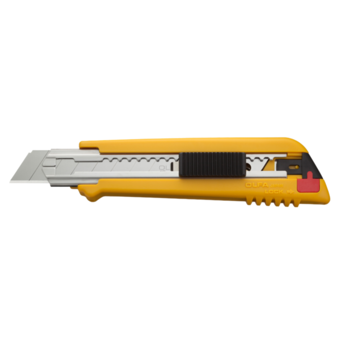 The PL-1 18mm Multi-Blade Utility Knife is perfect for heavy duty industrial work and jobs that require continuous blade changes such as roofing, construction, flooring, drywall, electrical and more. The OLFA PL-1 #5021 utility knife stores up to five snap-off blades in addition to the blade in use, for 40 fresh cutting edges with a quick snap.