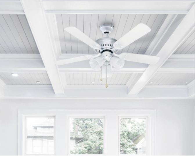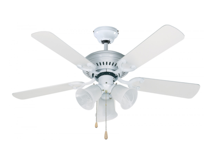 Enhance your living space with the 42-inch Seymour ceiling fan. Featuring a clean white finish and alabaster glass shades, the Seymour will add a classic design element to your home. Five reversible blades can easily be switched from white to pine finish to suit any décor