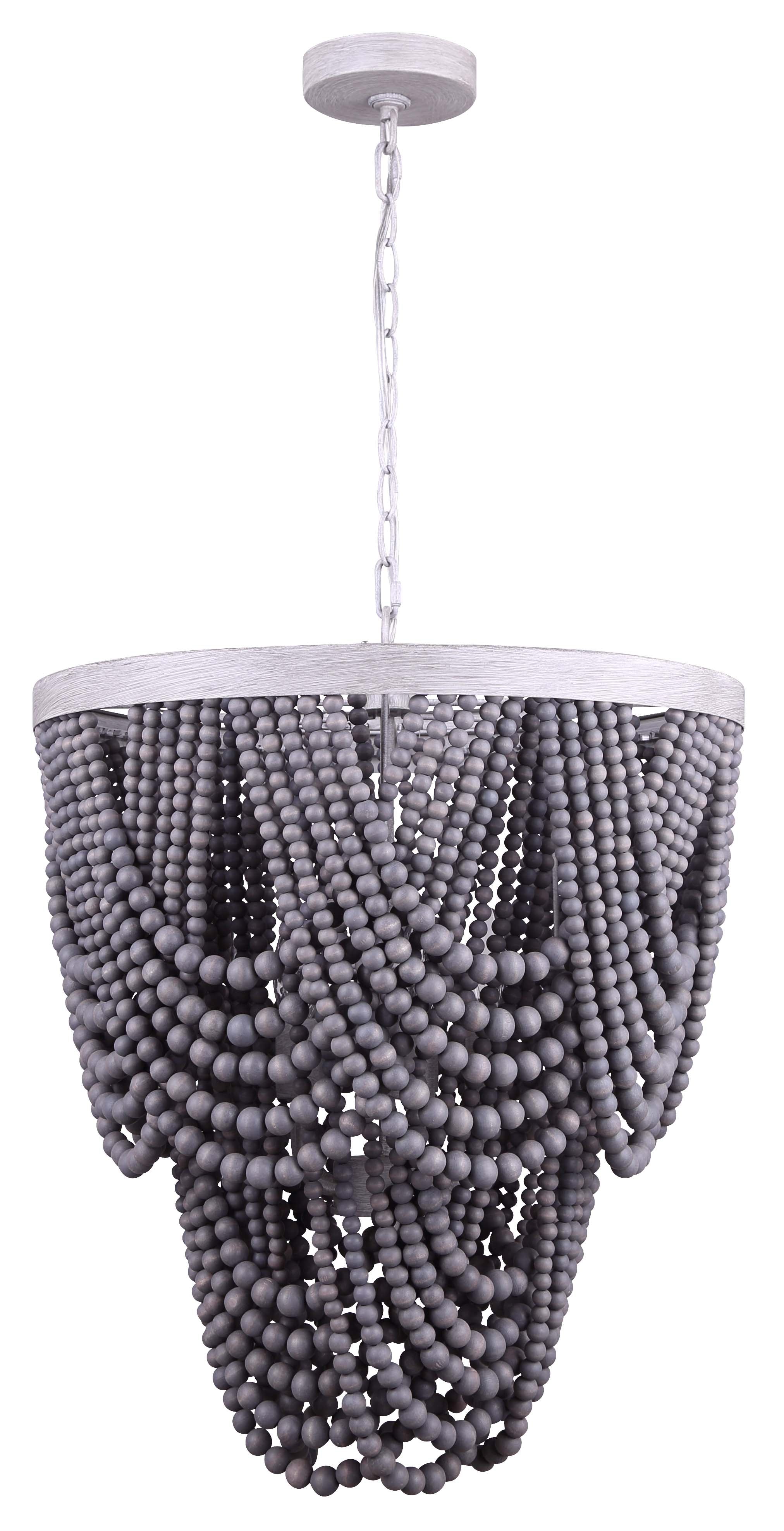 Chandelier - Canarm SOLAN Wide Chain Chandelier, BGY Grey Real Wood Beads, 123001
