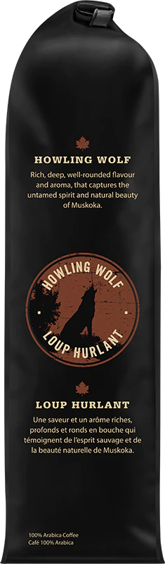 Algonquin Park is home to the Eastern Wolf, which travels in packs across territories that range from 150 to 500 kilometres in size. Given that the front door of the Muskoka Roastery is 35 km from the park, wolves are a not uncommon siting. What is even more common is to hear the packs howling at night, which is what inspired this distinctive coffee. The roast profile brings out the best in the exotic East African beans in the blend capturing the wild character of the wolves at our doorstep.