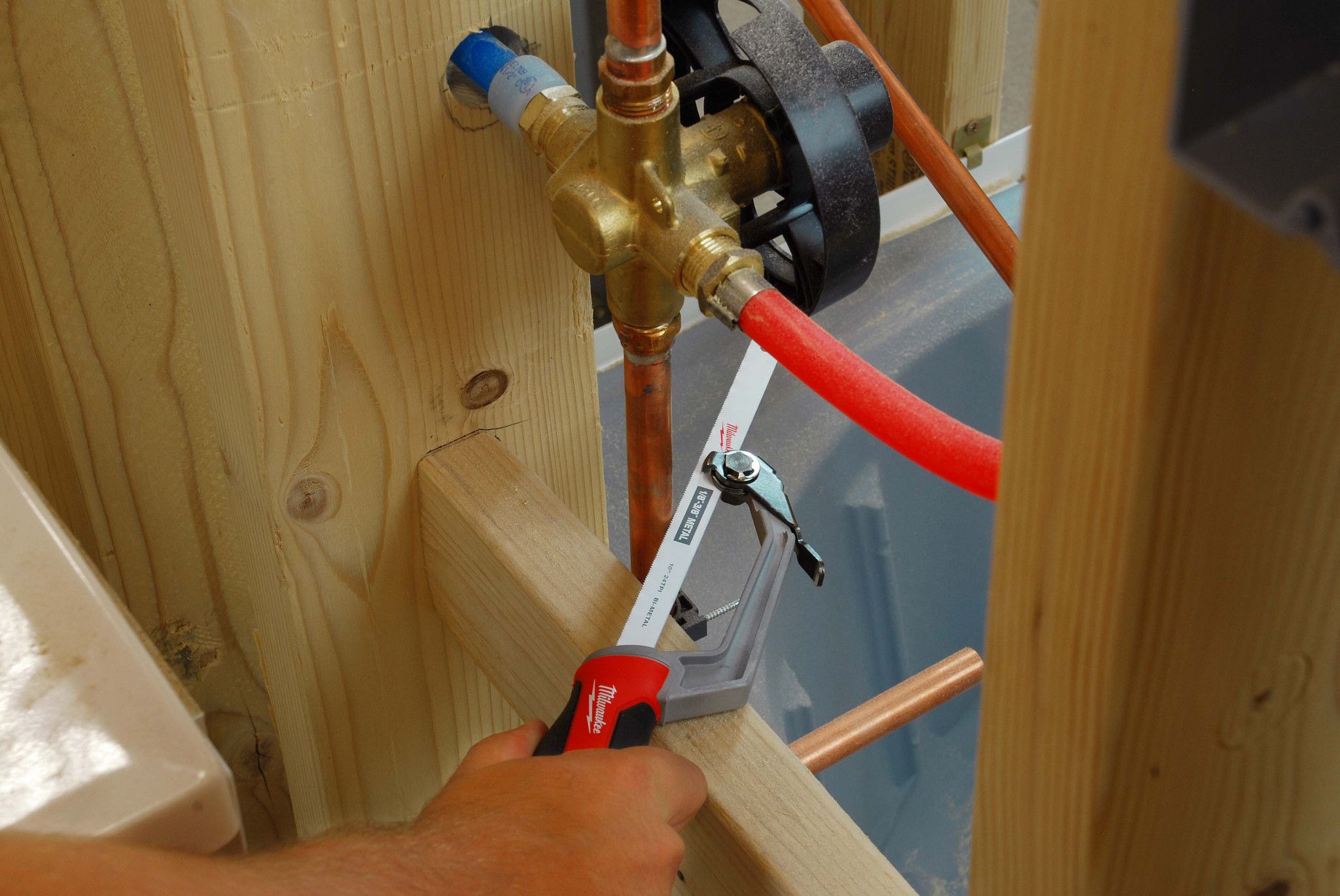 The 10 inch Compact Hack Saw features a compact design that is ideal for small cutting applications. The MILWAUKEE® hacksaw tool allows for tool-free blade changes for quick blade length for increased efficiency in the field and a rubber overmold adds comfort for you. This tool is great for cutting copper tubing, metal bolts and small PVC.