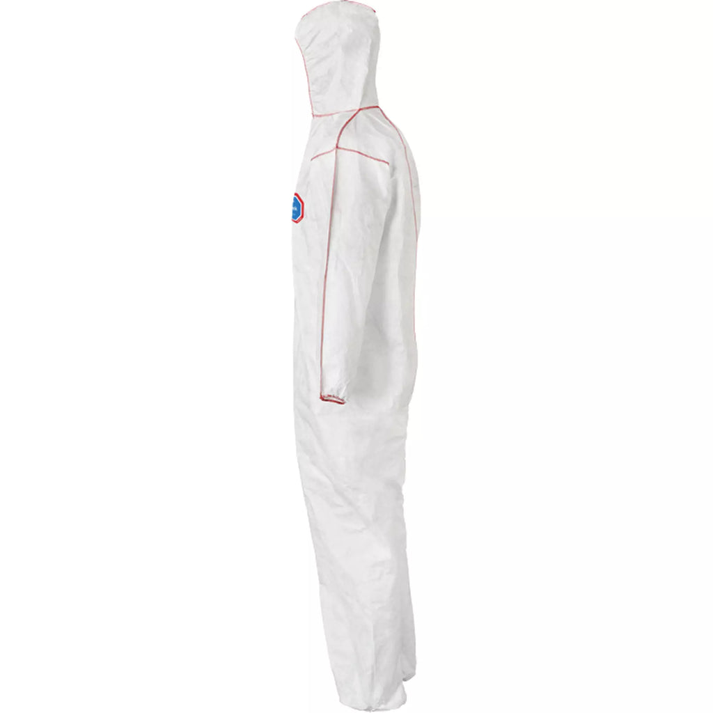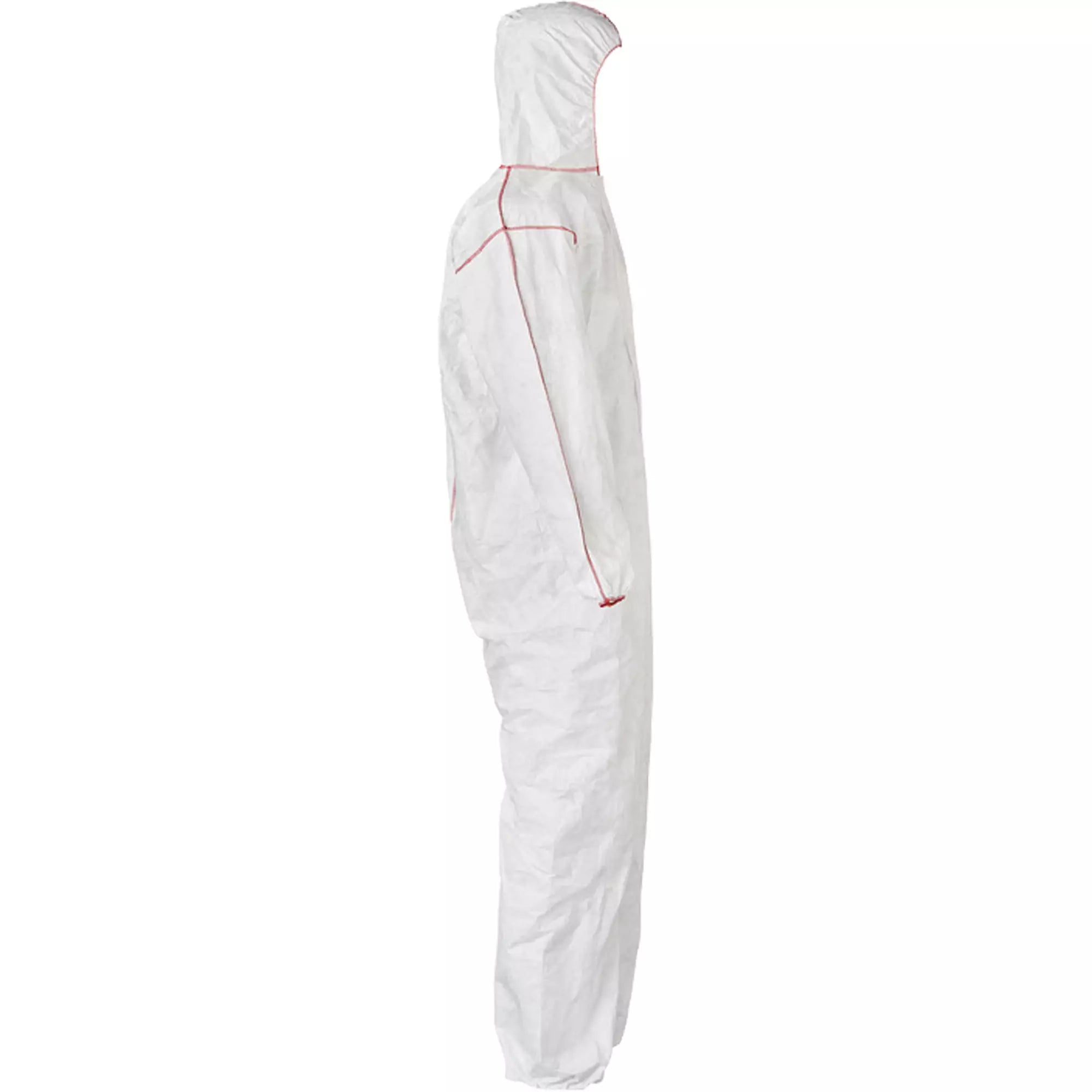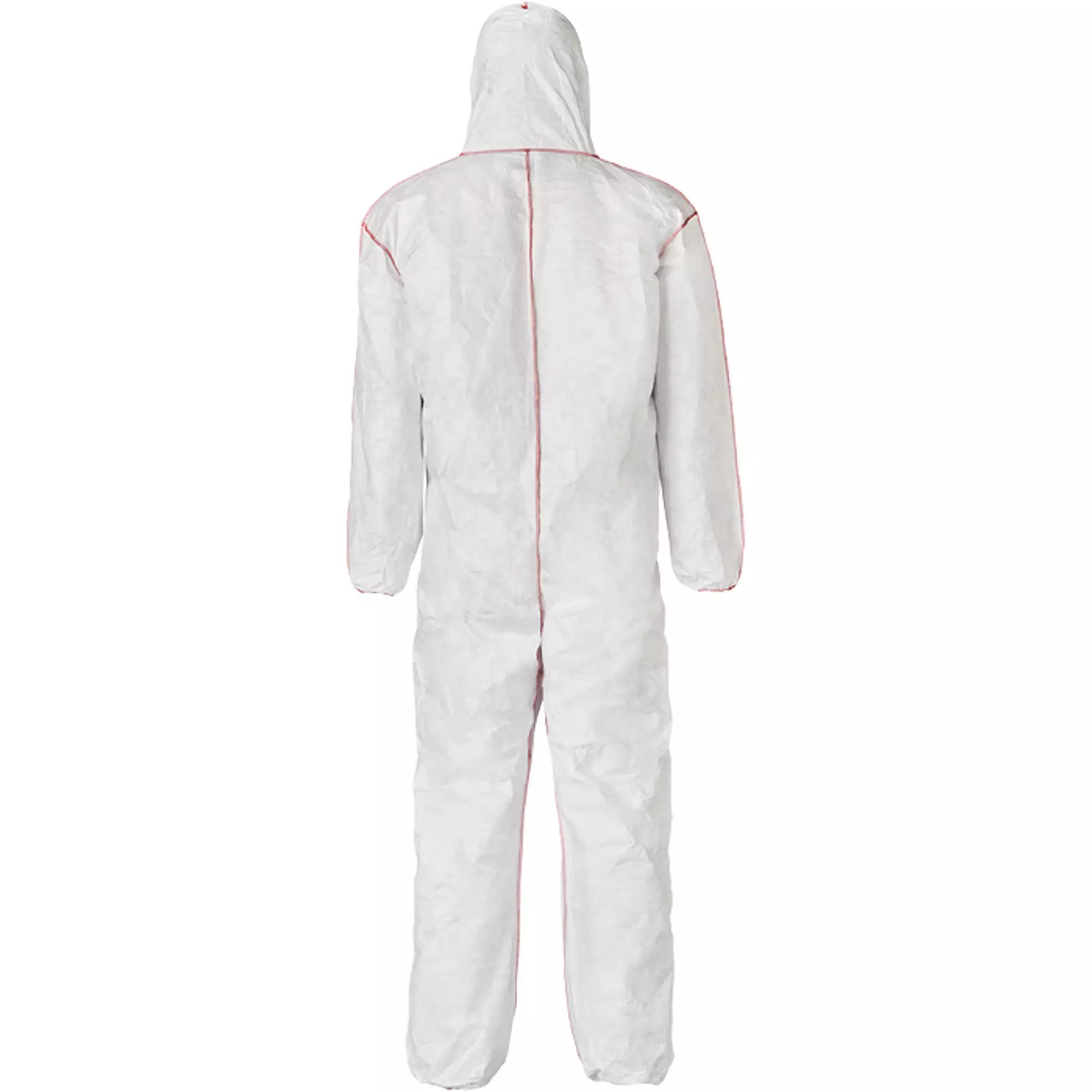 Coveralls - DuPont Tyvek® 400 SFR Standard Fit Hood, Elastic Wrists & Ankles, Relaxed Fit, Storm Flap, Red Zipper, Red External Serged Seams, White (Case of 25) ST127