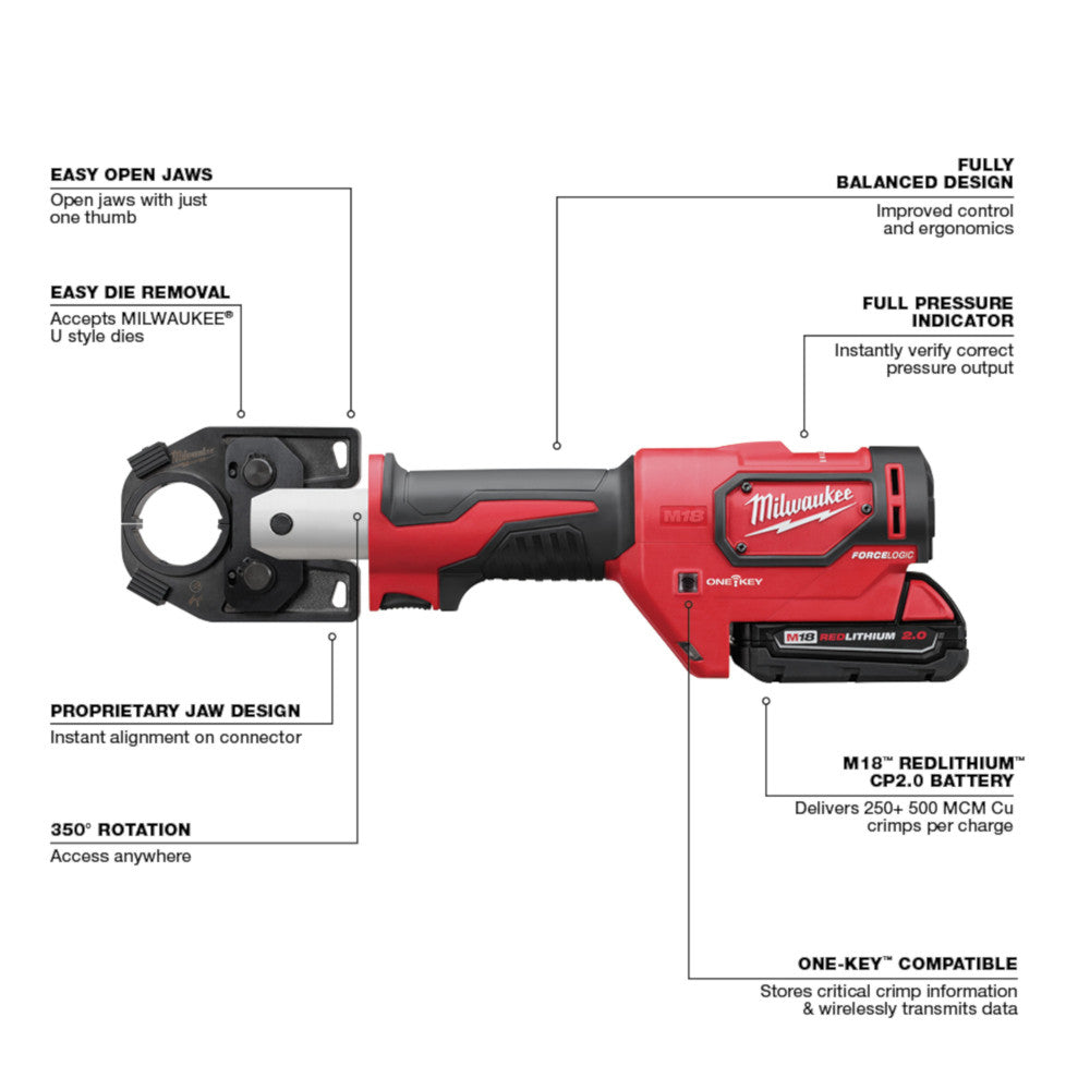 Crimper Kit - Milwaukee M18™ FORCE LOGIC™ 600 MCM (Crimper, Battery & Charger), 2679-22
