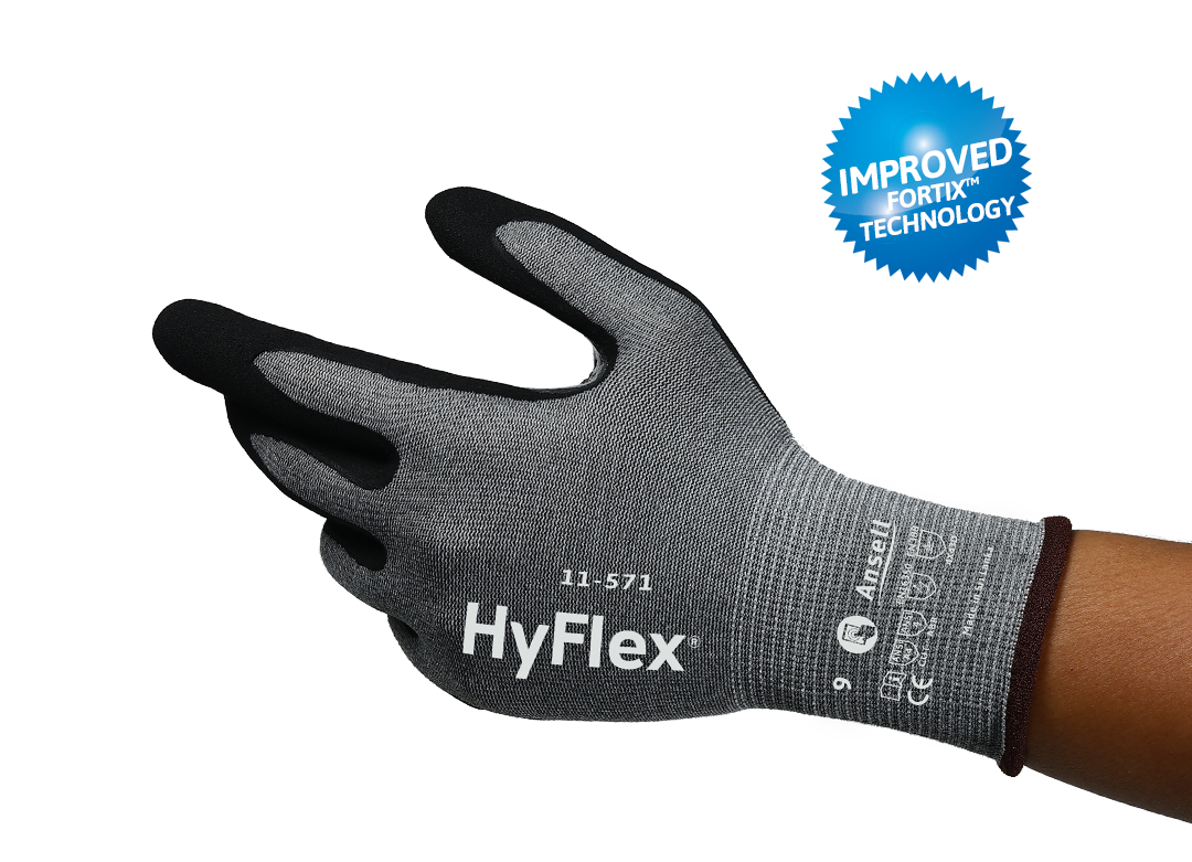 Heightened defenses: Developed with INTERCEPT™ Cut Resistance Technology using Next Generation HPPE single yarn, HyFlex® 11-571 safety gloves achieve EN ISO D / ANSI A4 standards for cut resistance providing 2x more cut protection***