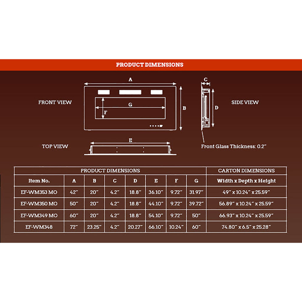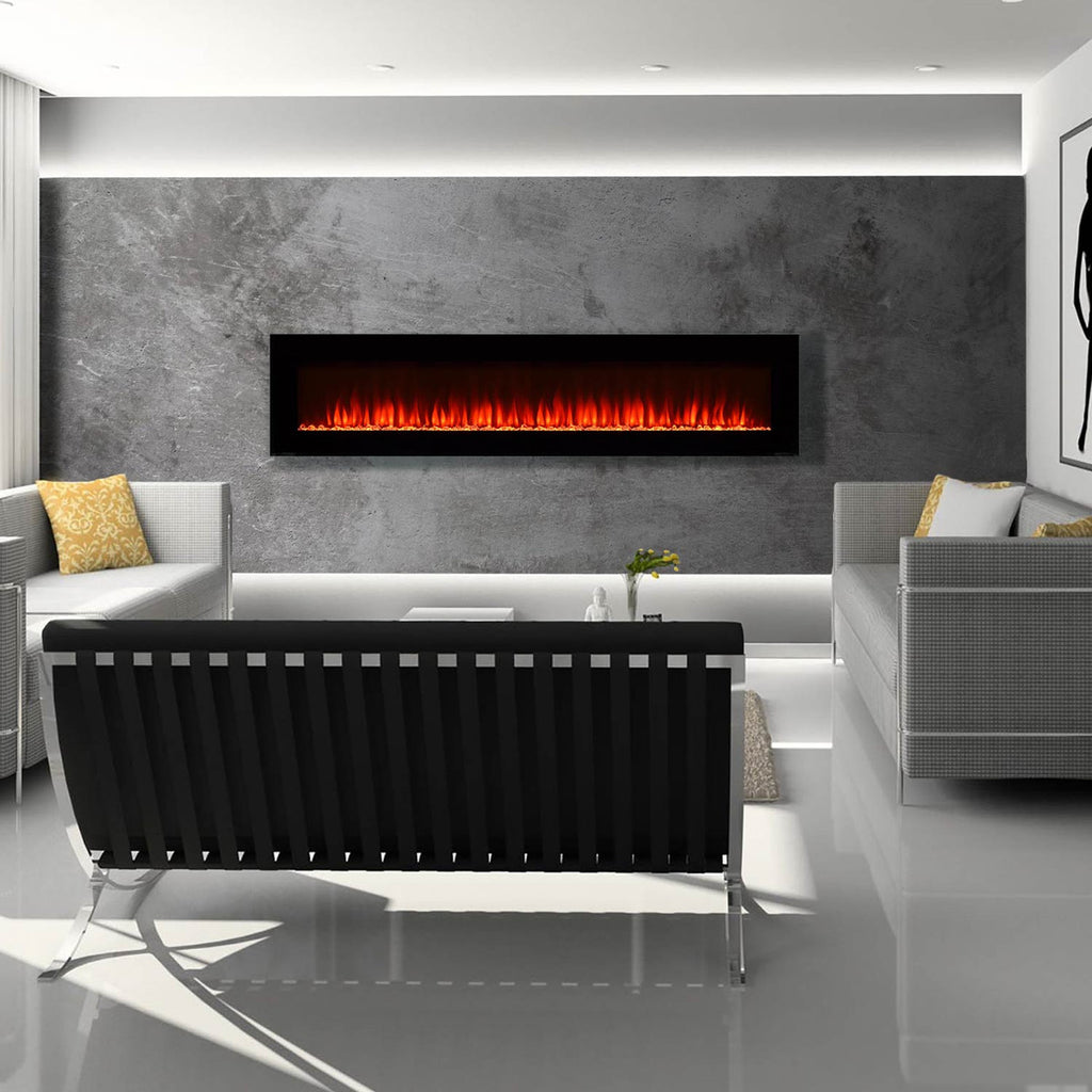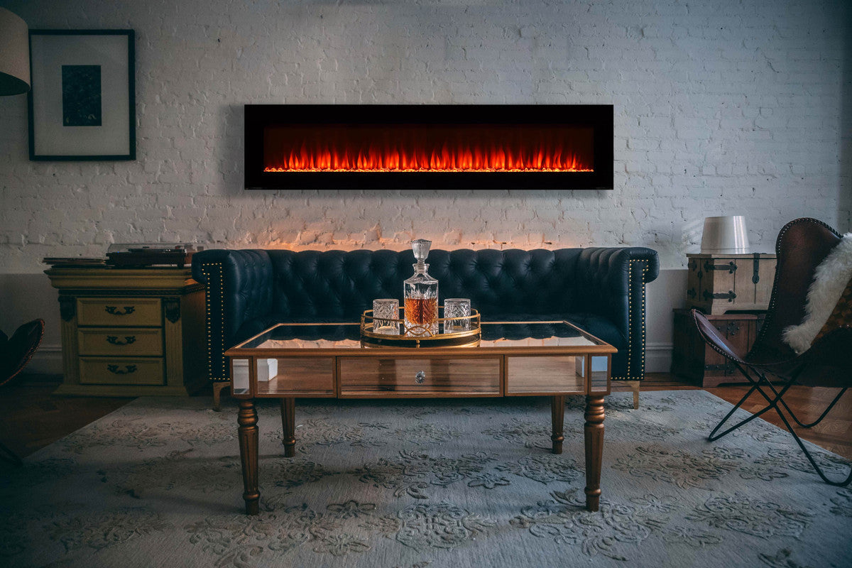 Staying warm has never looked and felt so good. Our new super-slim fireplace is controllable from your Smart Flame App or included remote control, allowing you to customize the ambiance in your room with over 1500 different color combinations. The included logs and crystal ember bed shine against the upgraded LED flame to give the appearance of real flames! Conserve energy by choosing your preferred heat option (750 watts or 1500 watts) and use the included energy-saving option to turn off the heat when your ideal temperature is reached. Mount this fireplace anywhere as recessed, partially recessed, or surface mounted with all mounting brackets included. Available in 4 sizes, you can find the perfect one to warm your space.