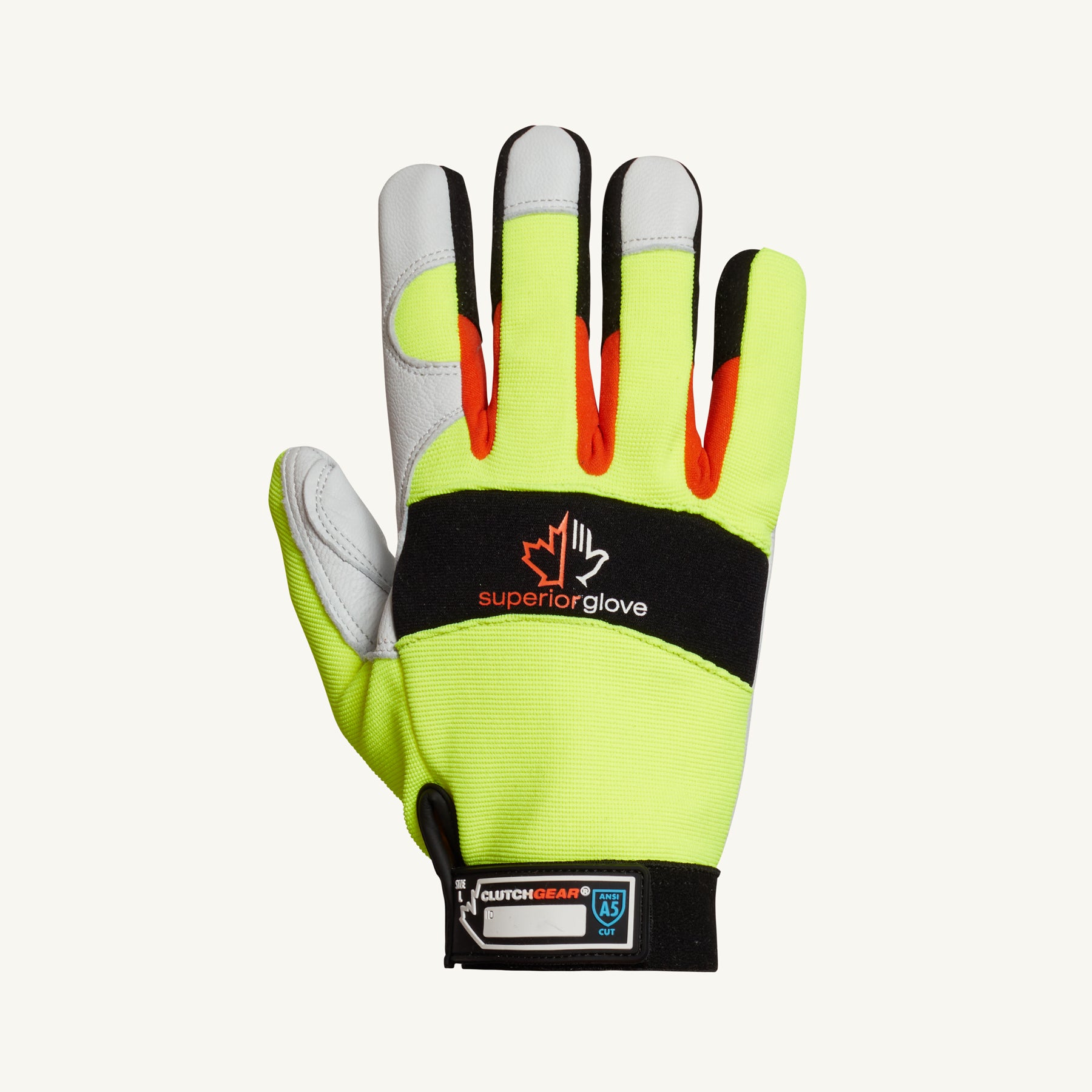 General Purpose Gloves - Superior Glove Clutch Gear® Hi-Viz Mechanics Glove with Goat-Grain Palms, MXGKGHV
