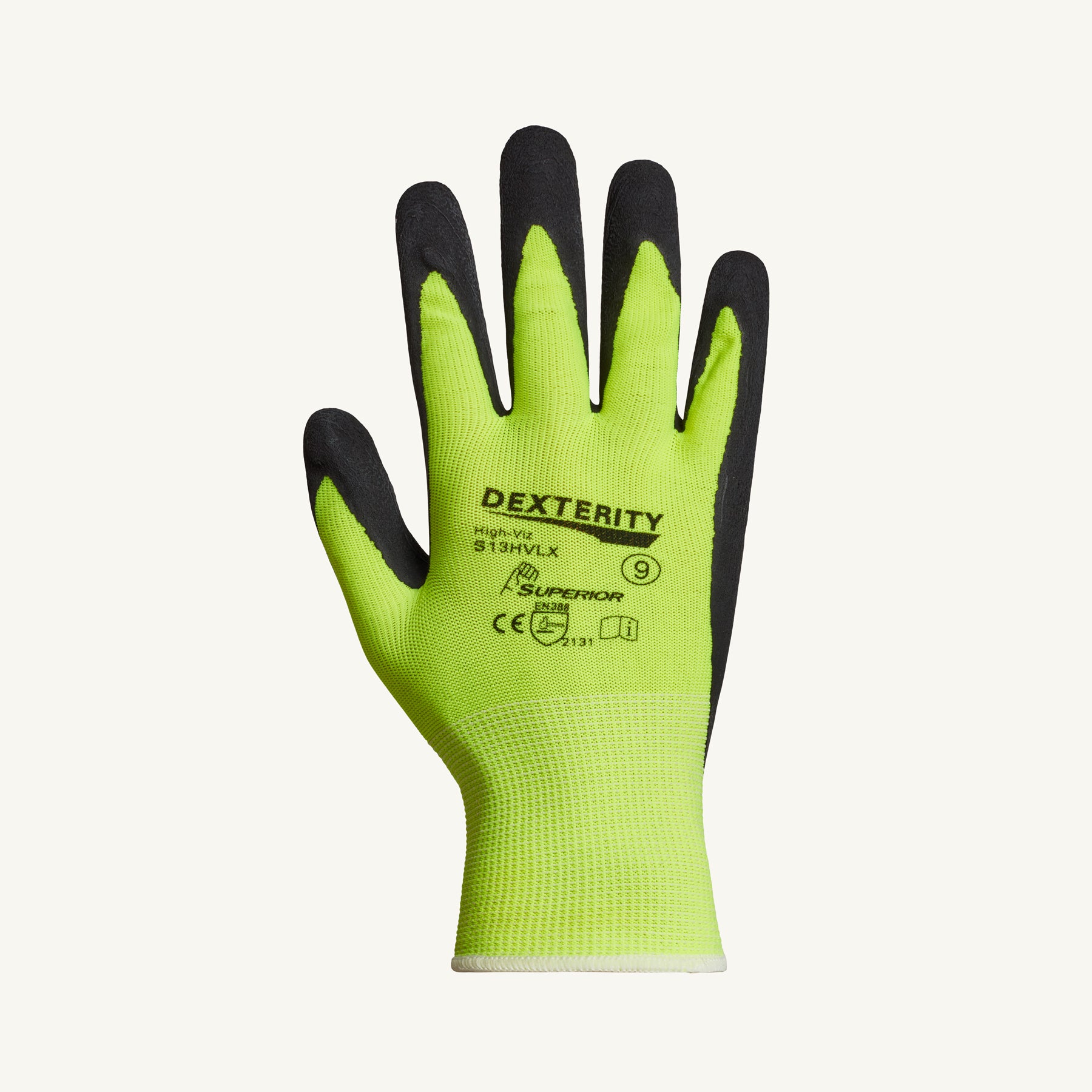 General Purpose Gloves - Superior Glove Dexterity Latex Palm, Hi-Viz, S13HVLX