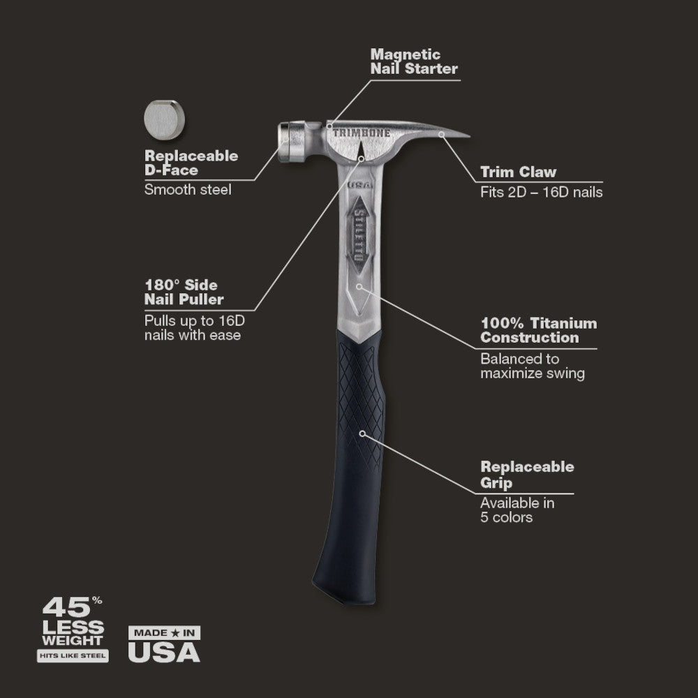 Hammer - Milwaukee STILETTO® TRIMBONE™ 10oz Titanium Finish Hammer, TRMB