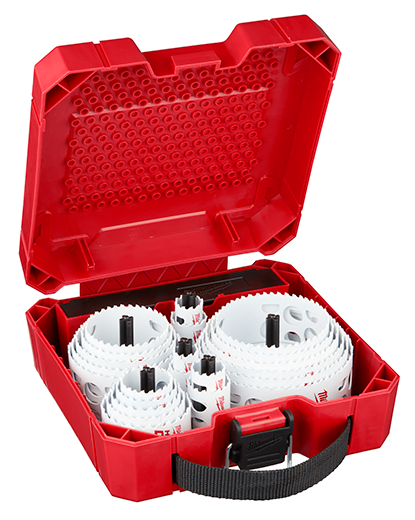 The HOLE DOZER™ 28-Piece General Purpose Hole Saw kit features a new 3.5 TPI tooth design that offers you the longest life in metal applications. These MILWAUKEE® HOLE DOZER™ Bi-Metal Hole Saws feature the industry's only Lifetime Tooth Break Warranty and can take on all general purpose applications, making them the most durable hole saws. The ALL-ACCESS SLOTS solve the frustration of plug removal, making you more productive with less downtime between holes. The new slot design also gives you increased pilot visibility for accurate placement and faster chip ejection keeping your cut cool. HOLE DOZER™ Thermoset Coating allows for faster cutting and is optimized for cordless tools, delivering you 25% more holes per charge. The HOLE DOZER™ Bi-Metal hole saws are proudly made in the USA. This hole saw kit also includes a case, which offers you enhanced customization capability thanks to the interchangeable pegs. You can store arbors, pilot bits, and more in the removable accessory box or remove it entirely to create more space for hole saws. Each Milwaukee Hole Saw Case features a reinforced grid design on the top and bottom, plus heavy-duty latches, securely storing the hole saws within this durable, hard case design.