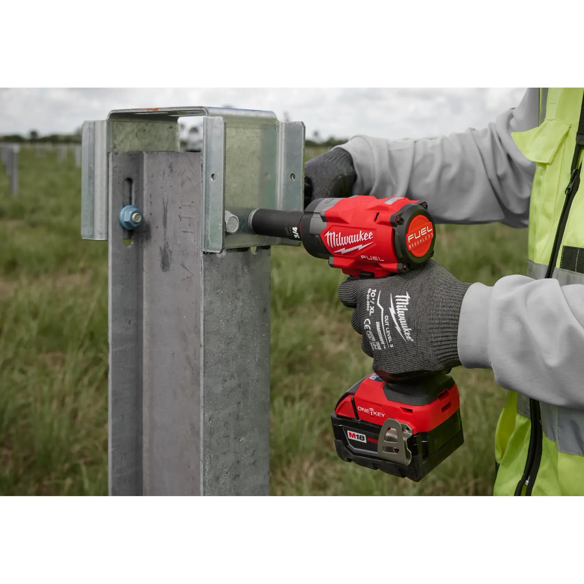 The M18 FUEL™ Controlled Torque Impact Wrench with TORQUE-SENSE™ are the industry’s most repeatable impact wrenches. TORQUE-SENSE™ torque control overcomes common variances seen on the jobsite, maintaining target torque better than competitive products that use blow counting algorithms. This performance is enabled by new to world sensors designed in-house by Milwaukee Tool that feed sophisticated machine learning algorithms. Every trigger pull is recorded, and data can be downloaded for customizable reporting to ensure confident installation. This cordless impact wrench is ideal for utility-scale solar projects, where eliminating the 2-step method on the jobsite can deliver up to 3X faster installation speed. Milwaukee offers best-in-class performance and application speed with FUEL™ technology, enabled by POWERSTATE™ brushless motors, REDLINK PLUS™ tool intelligence, and REDLITHIUM™ battery technology.