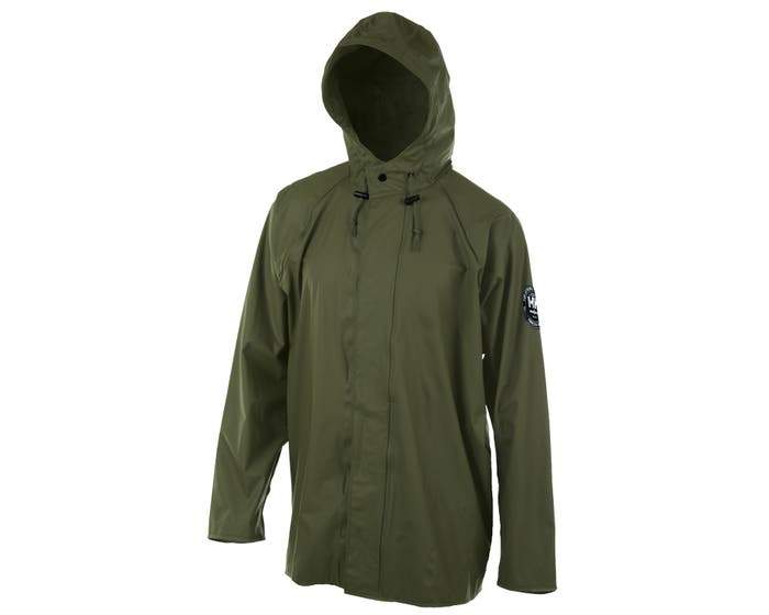 Stay dry on rainy days at the jobsite in this waterproof jacket. The PU shell features a comfortably loose fit and double storm flaps to prevent moisture from seeping in through the zipper. The three-panel hood has a drawcord with cord locks to pull it snug around your head, sealing out cold air.