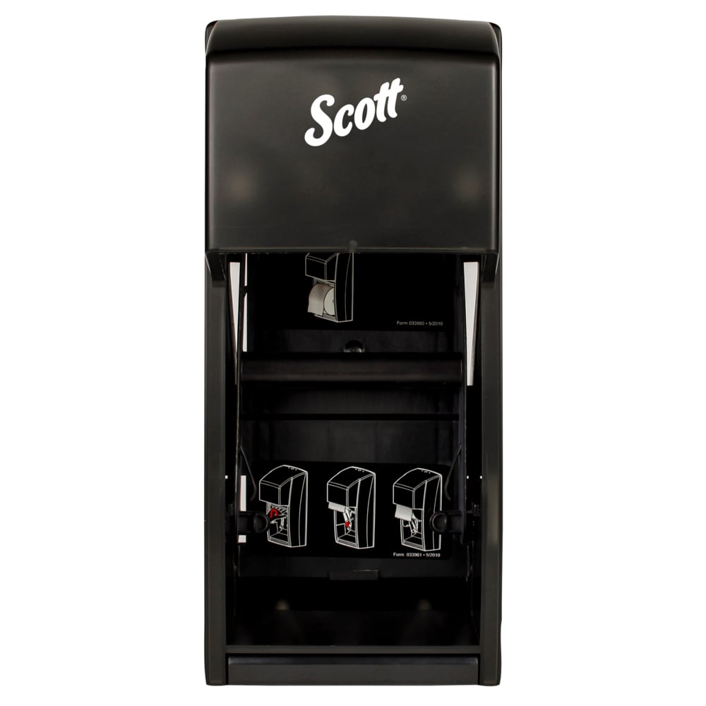- 1 Dispenser/Case; Scott® Vertical Single Roll Toilet Paper Dispenser; Black; 6.0" x 13.6" x 6.6"