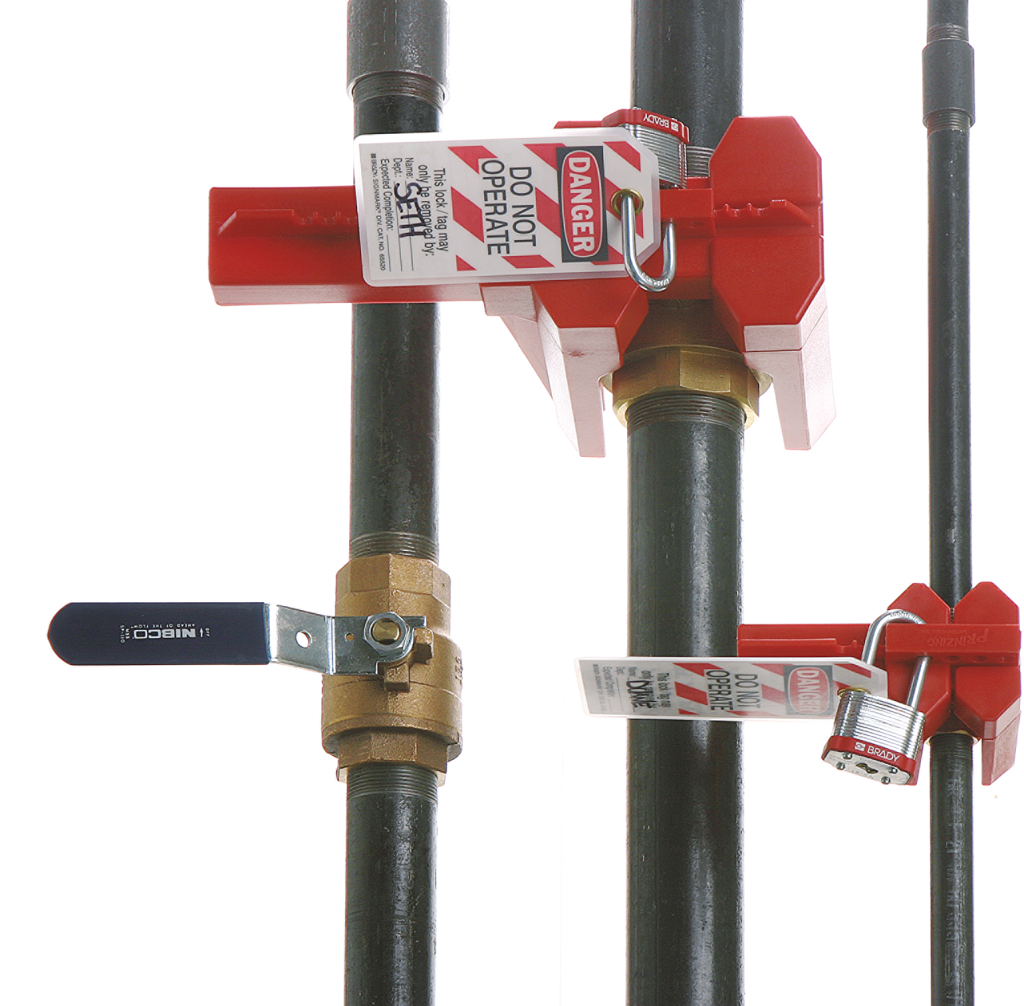 - 4-Legged Ball Valve Lockout devices lock out pipes 1/2" to 2-1/2" in diameter and can lock values OPEN on pipes from 1/2" to 1-1/4" in diameter