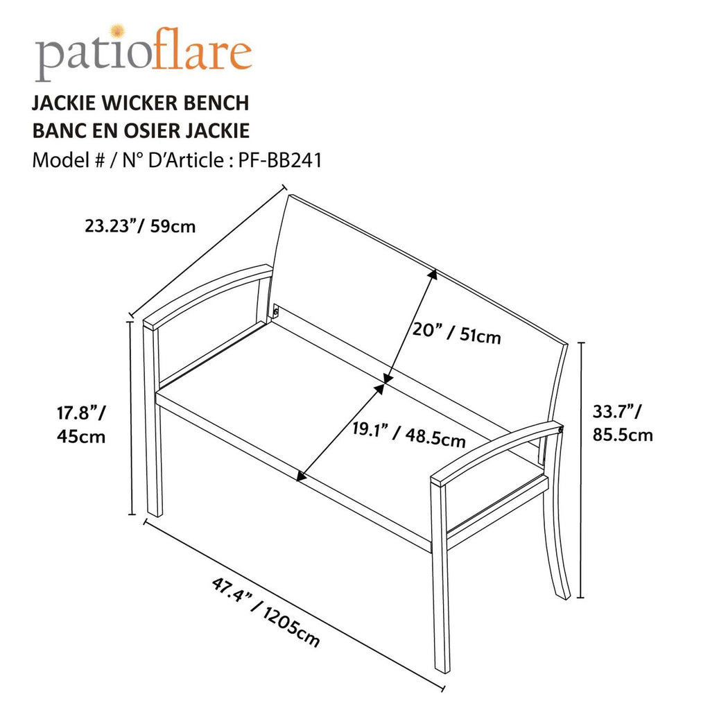 Outdoor Furniture - Patioflare Jackie Wicker Bench, PF-BB241-BK MO