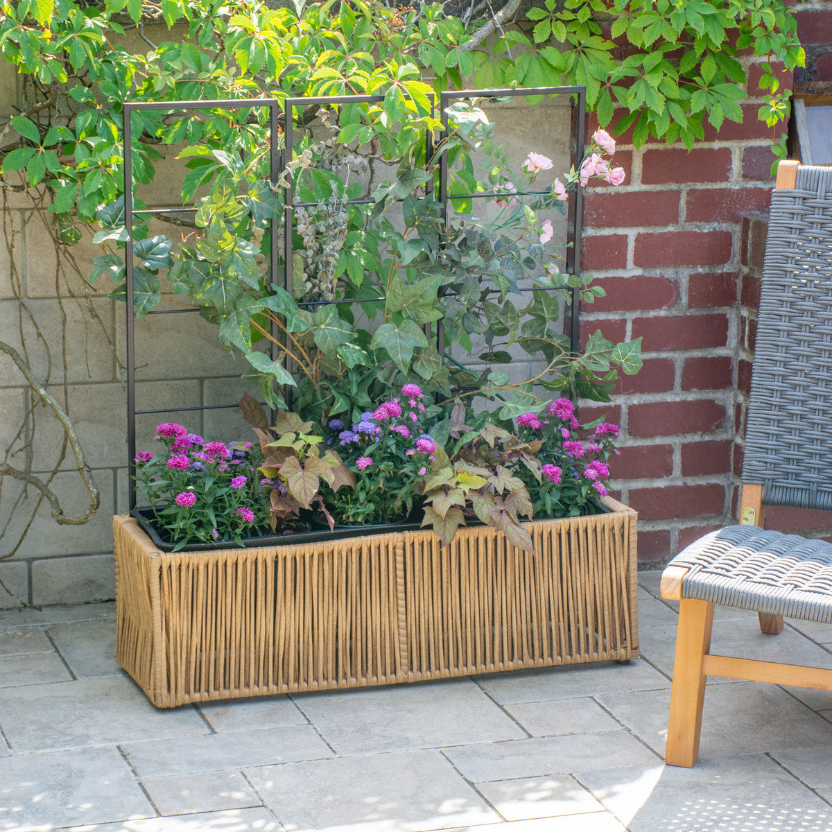 Grow tall plants and flowers in this wicker planter box from Grapevine. It makes a perfect privacy screen while growing your favourite climbing greenery. The stunning hand-woven resin wicker also looks great with other wicker items from the Grapevine collection of outdoor furniture and planters.
