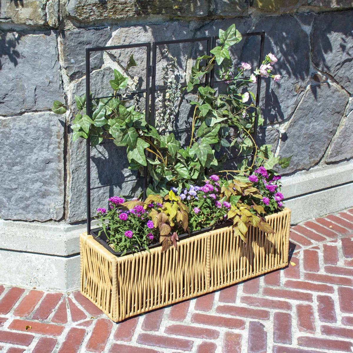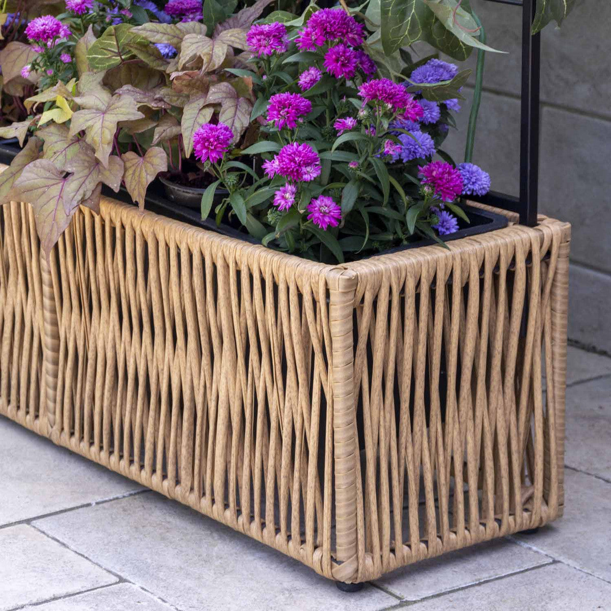 • Stunning hand-woven resin wicker planter with trellis on a strong powder coated steel frame