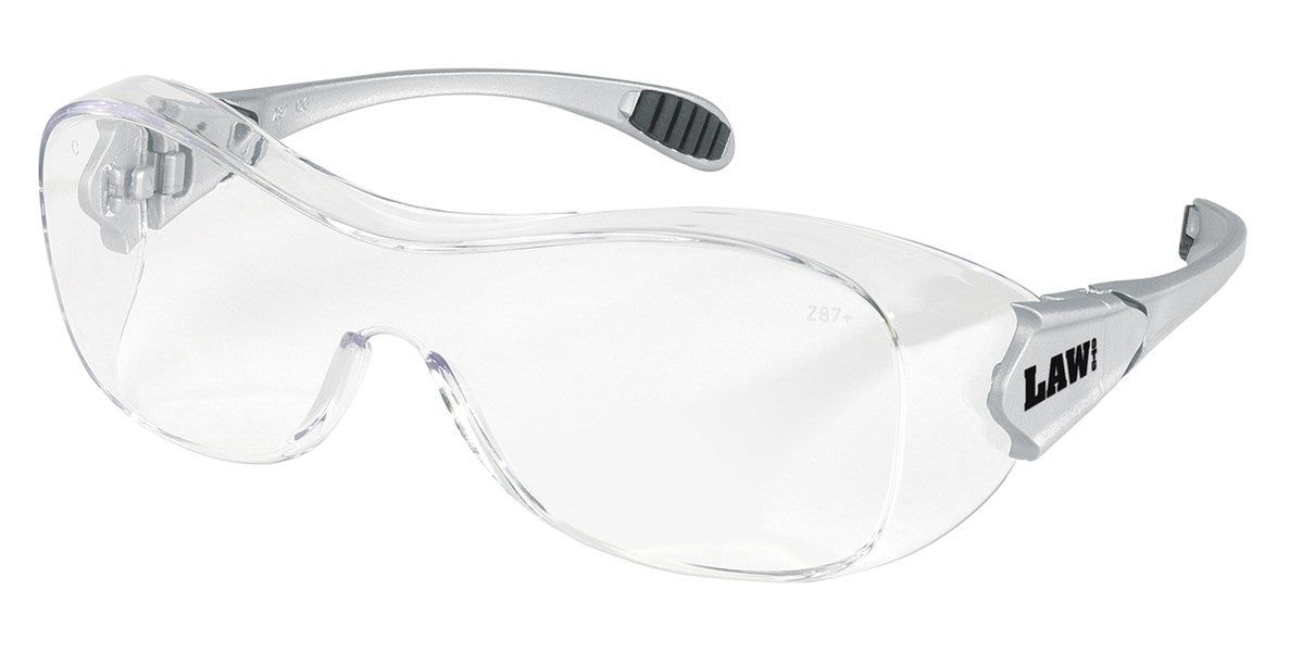 For those of us who need over the glass safety eyewear protection, the Law® OTG (Over the Glass) eyewear is a stylish and sensible option. Non slip TPR temples give the user comfort and grip and the wraparound style allows improved angular coverage and peripheral vision.  The OG110AF is designed to fit over most prescription eyewear.  Features include anti-fog lens coating, ratcheting temples for personalized fit, and a dielectric construction - containing no metal pieces.  When looking for the best Over the Glass safety glasses, choose MCR Safety's Law® OTG for excellent fit and feel.